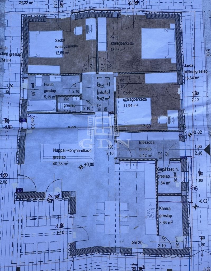 - elektromos padlófűtés (minden helyiségben külön szabályozható)