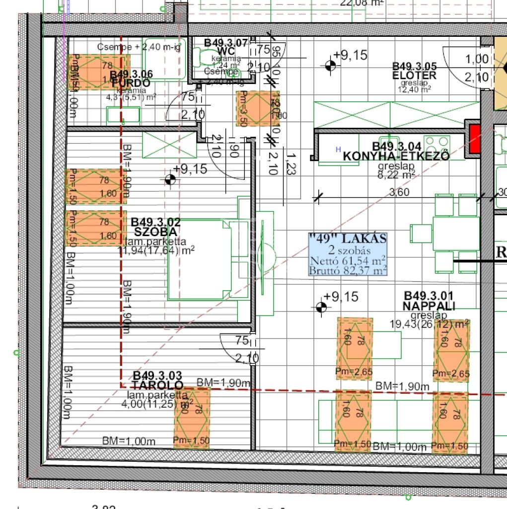 Elrendezés: konyha + étkező - nappali, hálószoba, előtér, tároló, fürdő, wc külön helyiségben