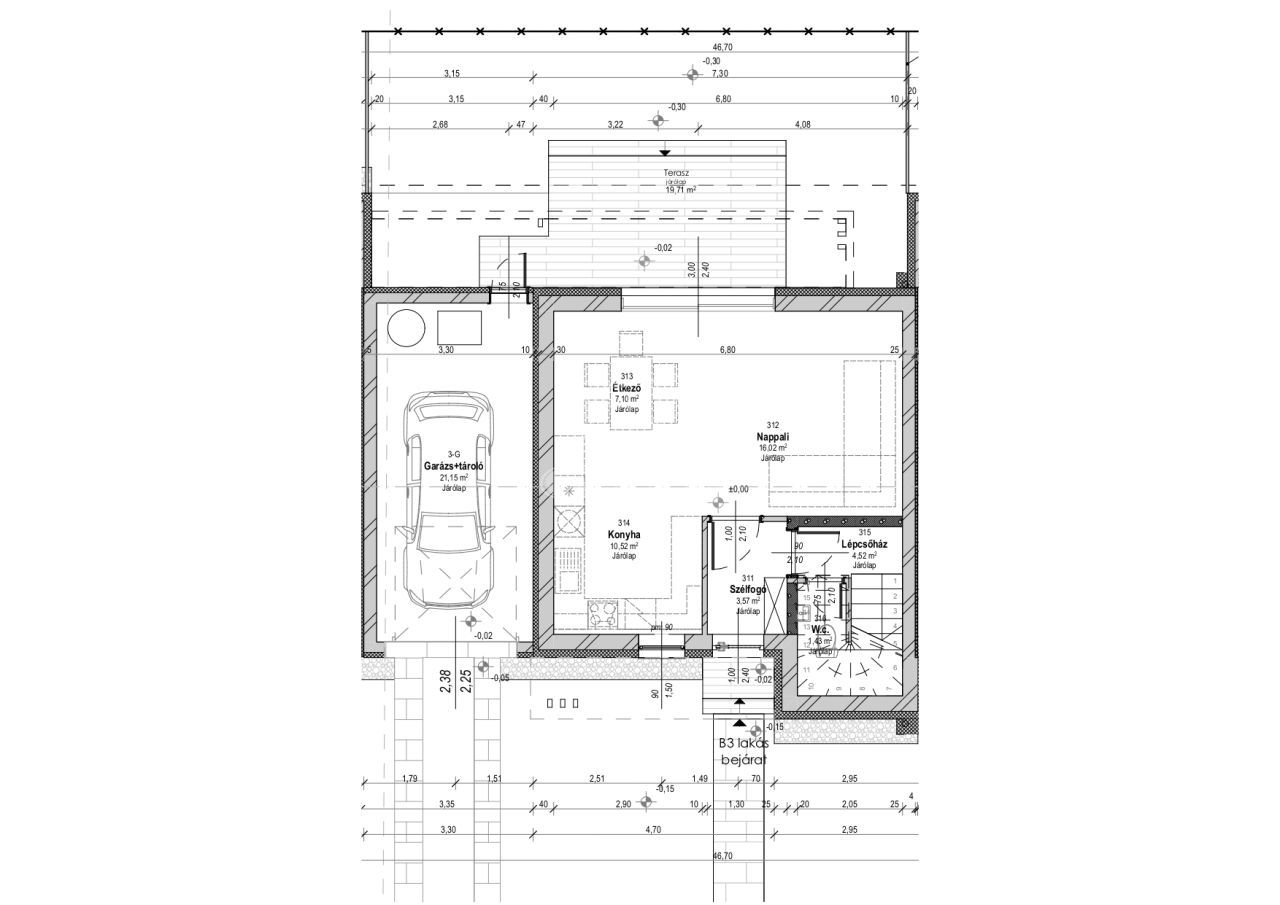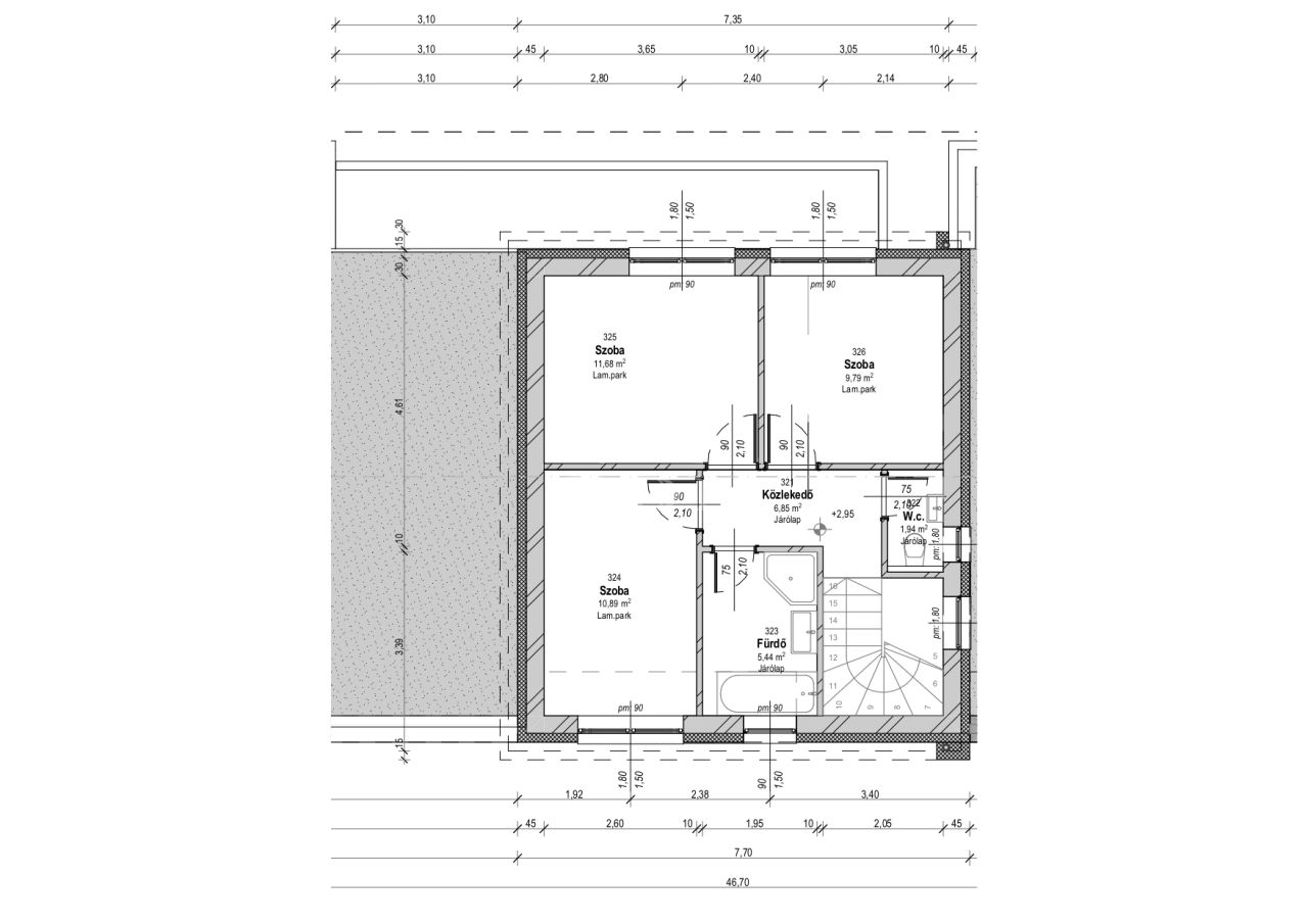 - Födémszerkezet 20 cm vastag monolit vasbeton szerkezet XPS kiegészítő hőszigeteléssel.