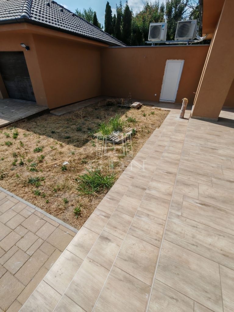 Óriási, délnyugati fekvésű terasz, amely tökéletes helyszíne lehet pihenésnek és szabadtéri programoknak. A ház külső hangulat világítással és funkcionális világítással ellátott.