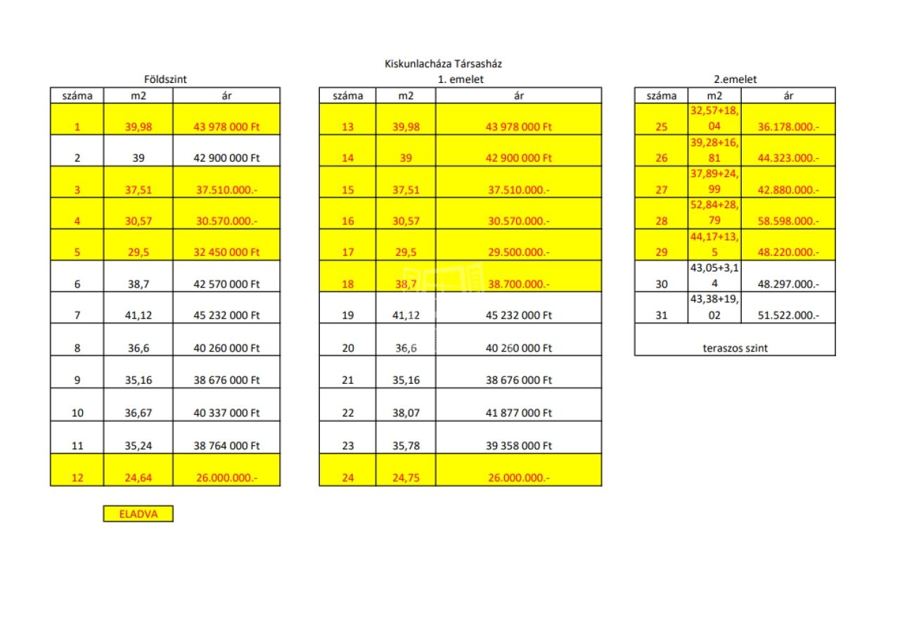 A társasházban 31 db lakás kerül megépítésre, a földszinti és első emeleti lakások erkély nélküliek, a 2 emeleti lakások terasz kapcsolattal rendelkeznek.