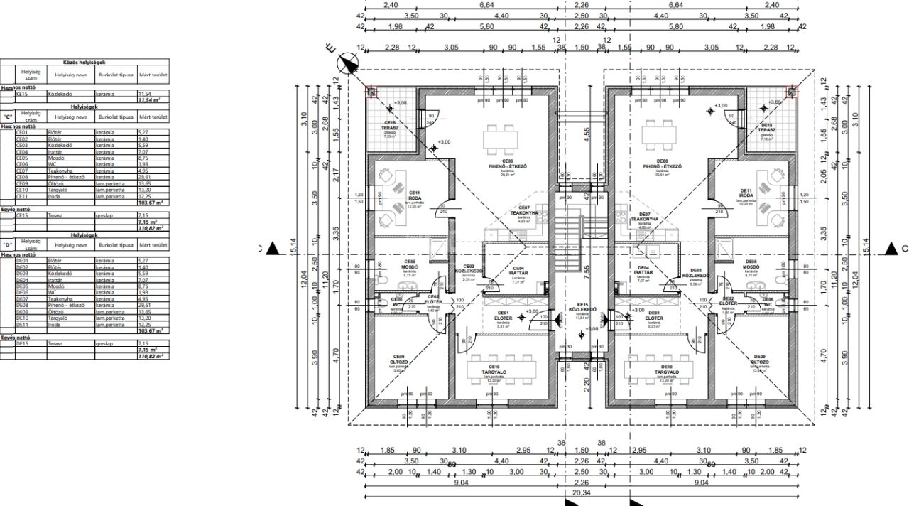 C jelű emeleti iroda 7,12 m2 terasszal 103,67 m2 hasznos térrel: 76.200.000 ft