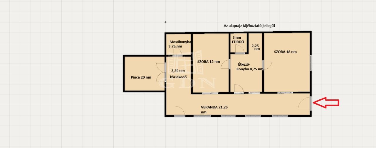A veranda tölti be az előtér szerepét, de akár télikertként is funkcionálhat nagyságából adódóan. A 20 nm-es pince lehet hobbi szoba, de helyet adhat baráti vagy családi összejöveteleknek is.