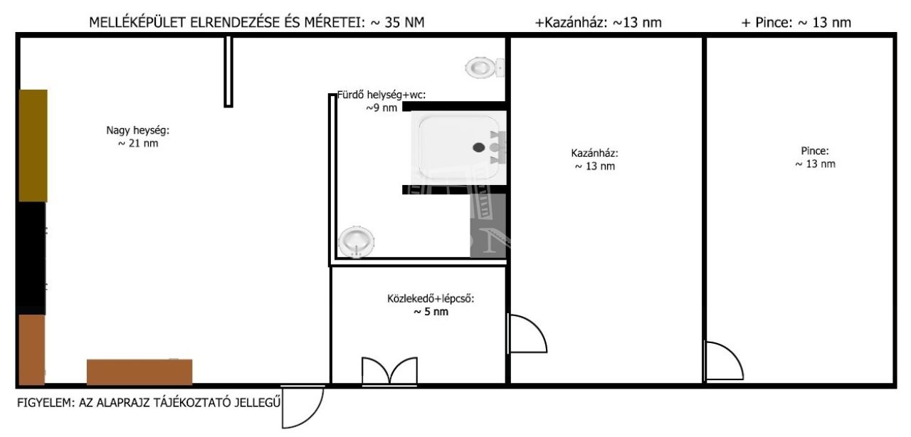 - főépület mérete: 30 nm+ 11 nm fedett terasz,