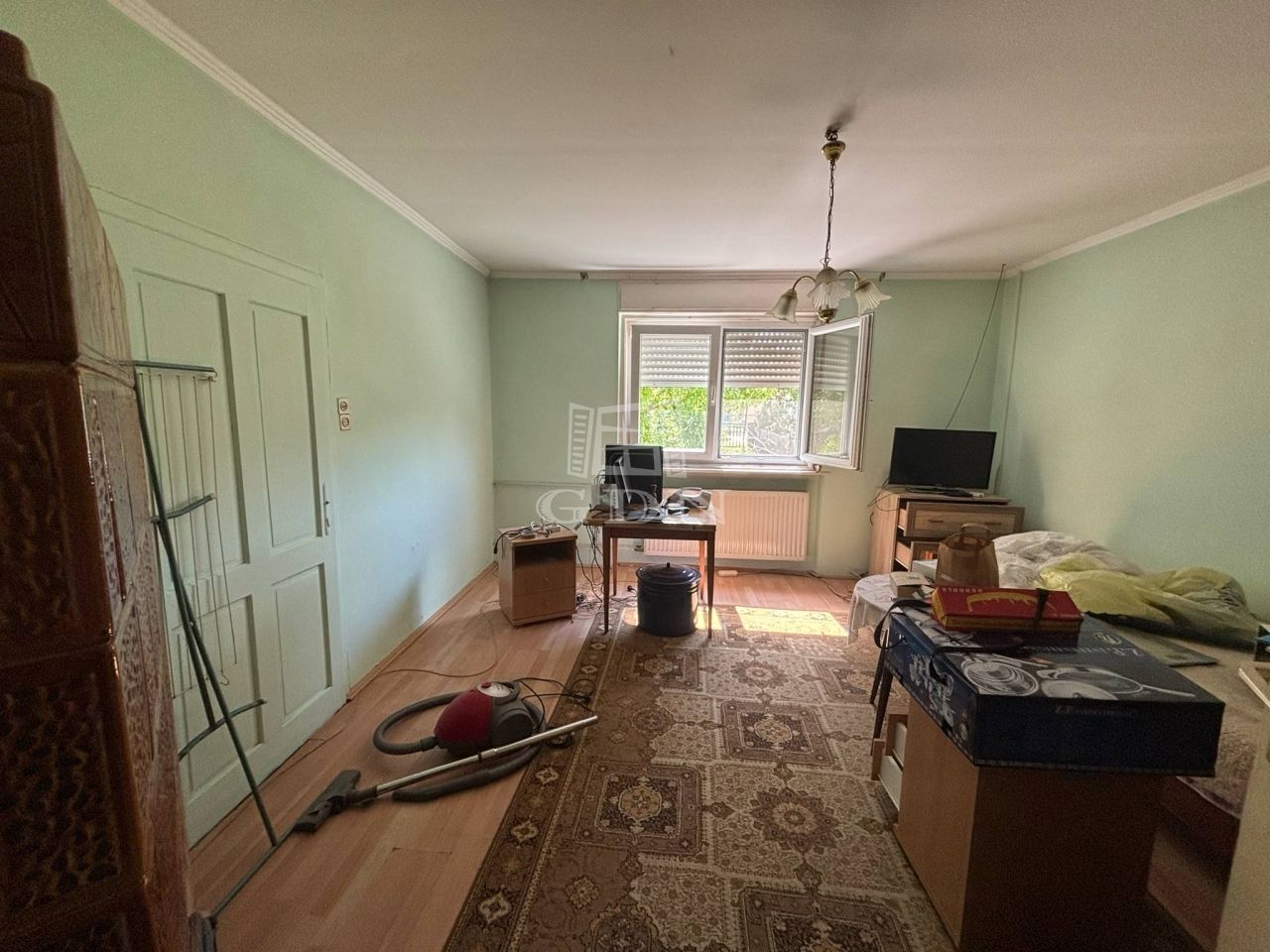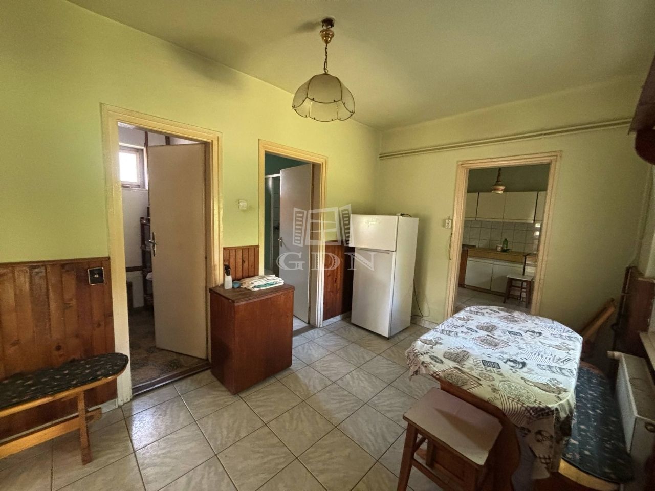 Az előkertes ingatlanban 2 szoba, előszoba, konyha, étkező, kamra és fürdőszoba került kialakításra.