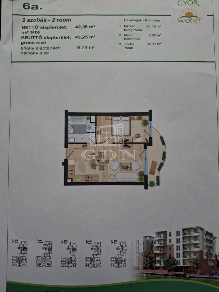 Eladó lakás Győr -Városrét Tulipán-ház épületében.