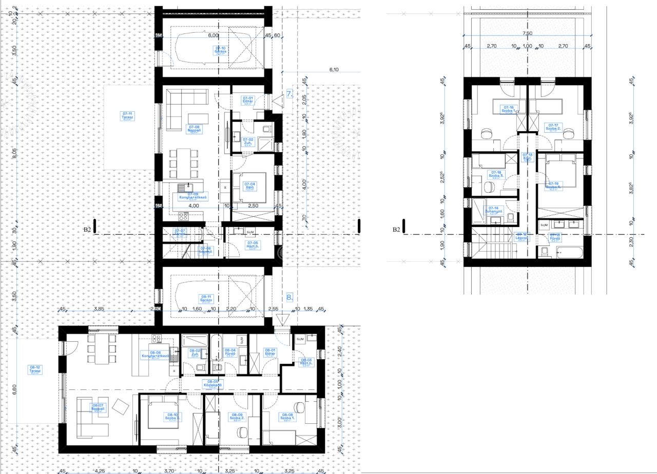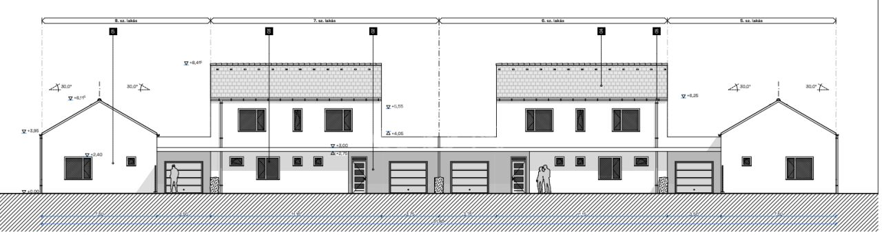 - 4 db földszinti lakás garázzsal + terasszal + saját kertrésszel.