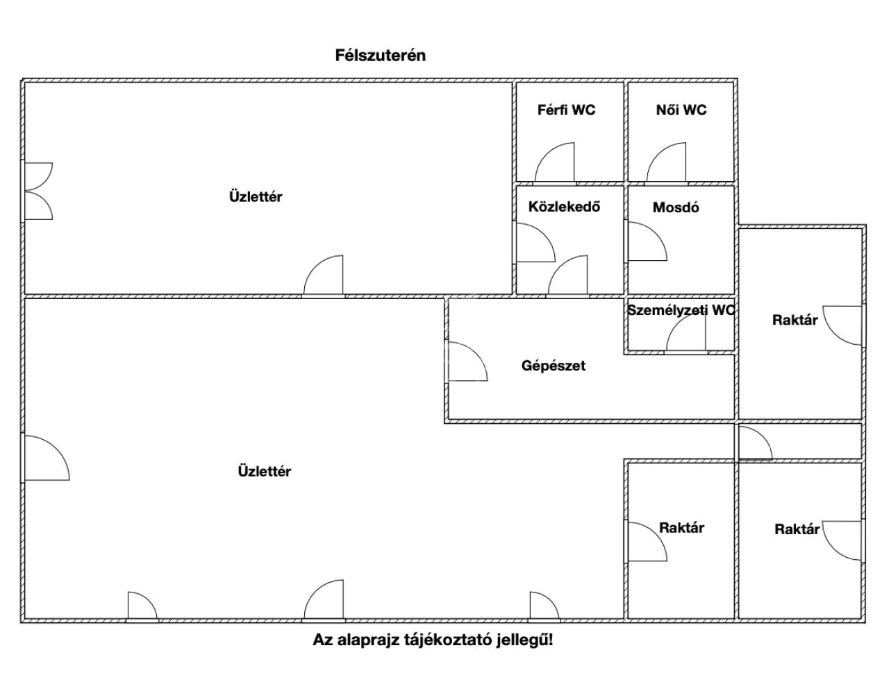 A három szintes épület az alábbi módon került kialakításra: az alsó szinten (félszuterén szint) egy üzlethelyiség található kiszolgálópulttal, eladótérrel, raktárakkal és mellékhelyiségekkel, míg a magasföldszinten négy szoba és egy konyha kapott helyet. Az első emeleten további négy szoba található, így az ingatlan elrendezése kiválóan alkalmas akár lakhatásra, akár üzleti célú működtetésre is. Az épület mellett két különálló tároló is rendelkezésre áll.