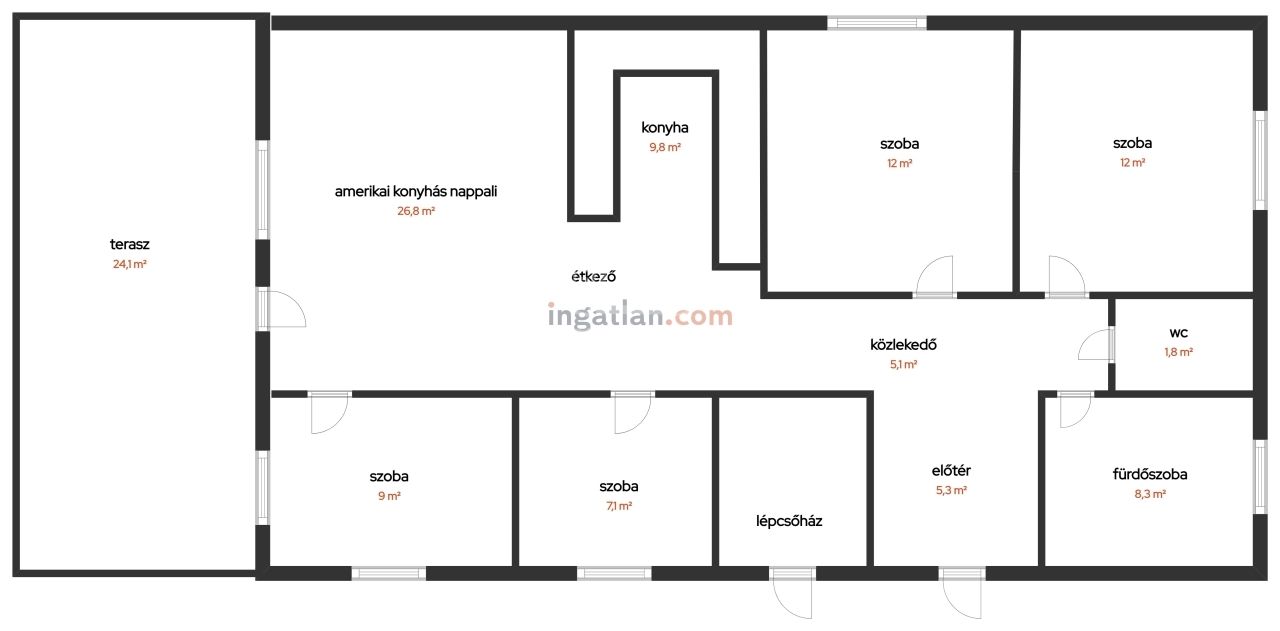 320 m² saját kert, amely a ház mögött helyezkedik el, így nyugodt, intim hangulatot biztosít.