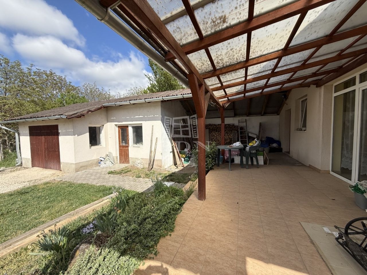 Az udvaron az épület mögött, kb. egy 25 nm nagyságú különálló épület van garázs (műhely –tároló), valamint egy fedett gépkocsibeálló.