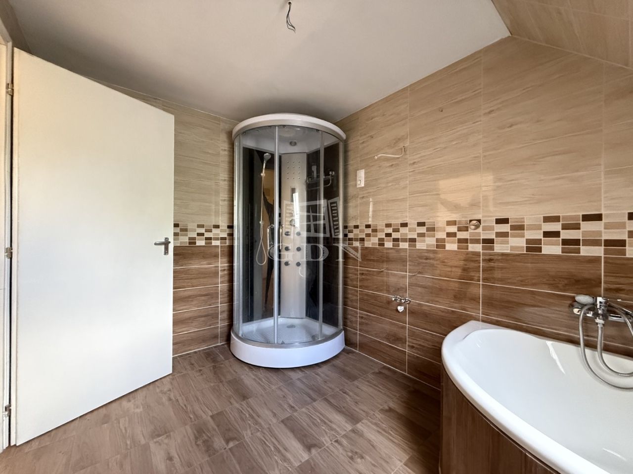 Az alsószint : előszoba, +, konyha spájzzal, étkező, nappali, 1 háló szoba, fürdőszoba ( kád és zuhanyzó is van) + wc +terasz található.