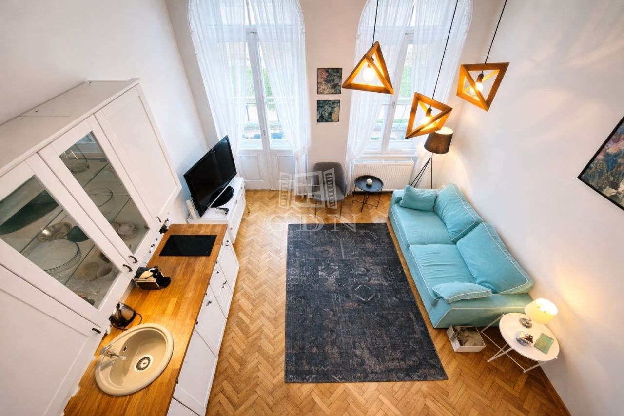 L-004781. Történelmi belváros közelében, műemlék jellegű épületben eladó egy 1. emeleti, 44 nm-es, erkélyes, klimatizált, nappali + 1 szoba + galéria elosztású, 2021-ben felújított téglalakás.