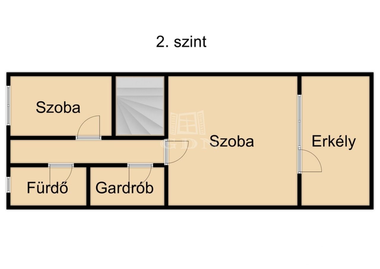 Emelet: 2 hálószoba, fürdőszoba, gardróbszoba, erkély