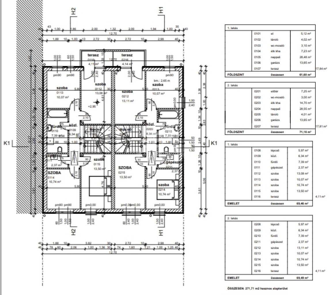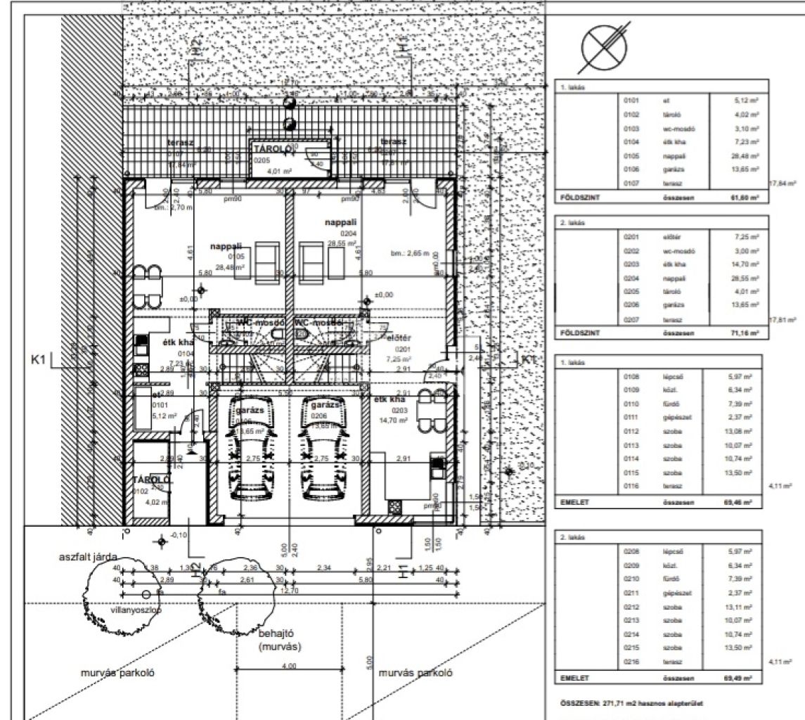 A 2 lakás nagyobb kertkapcsolattal, 141 m2 alapterülettel, földszinten garázzsal,wc-vel ,amerikai konyhás-nappalival, az emeleten pedig 4 hálószobával + fürdőszobával került kialakításra.