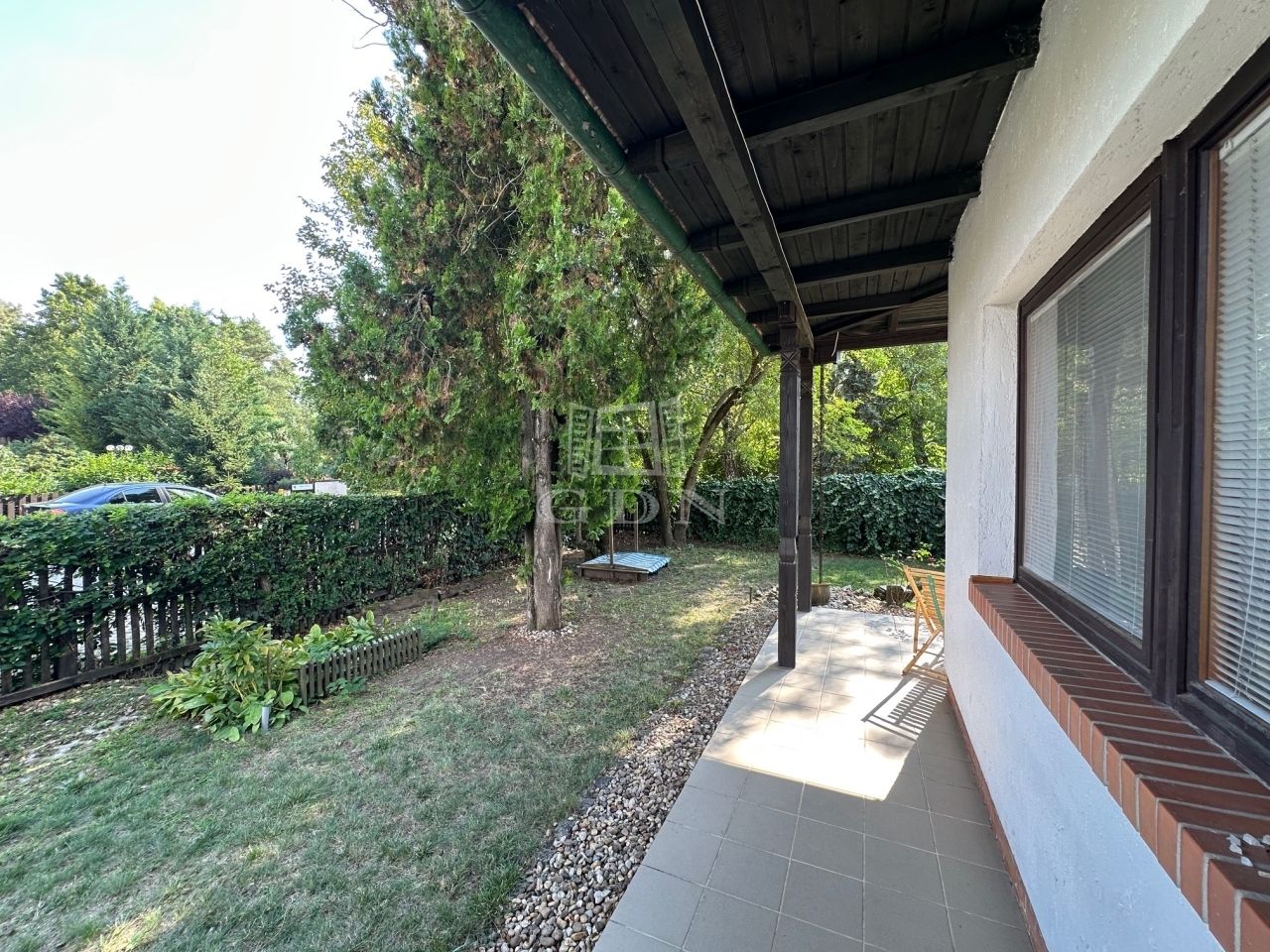 A ház kertkapcsolata egy 21 m2-es fedett teraszról nyílik.