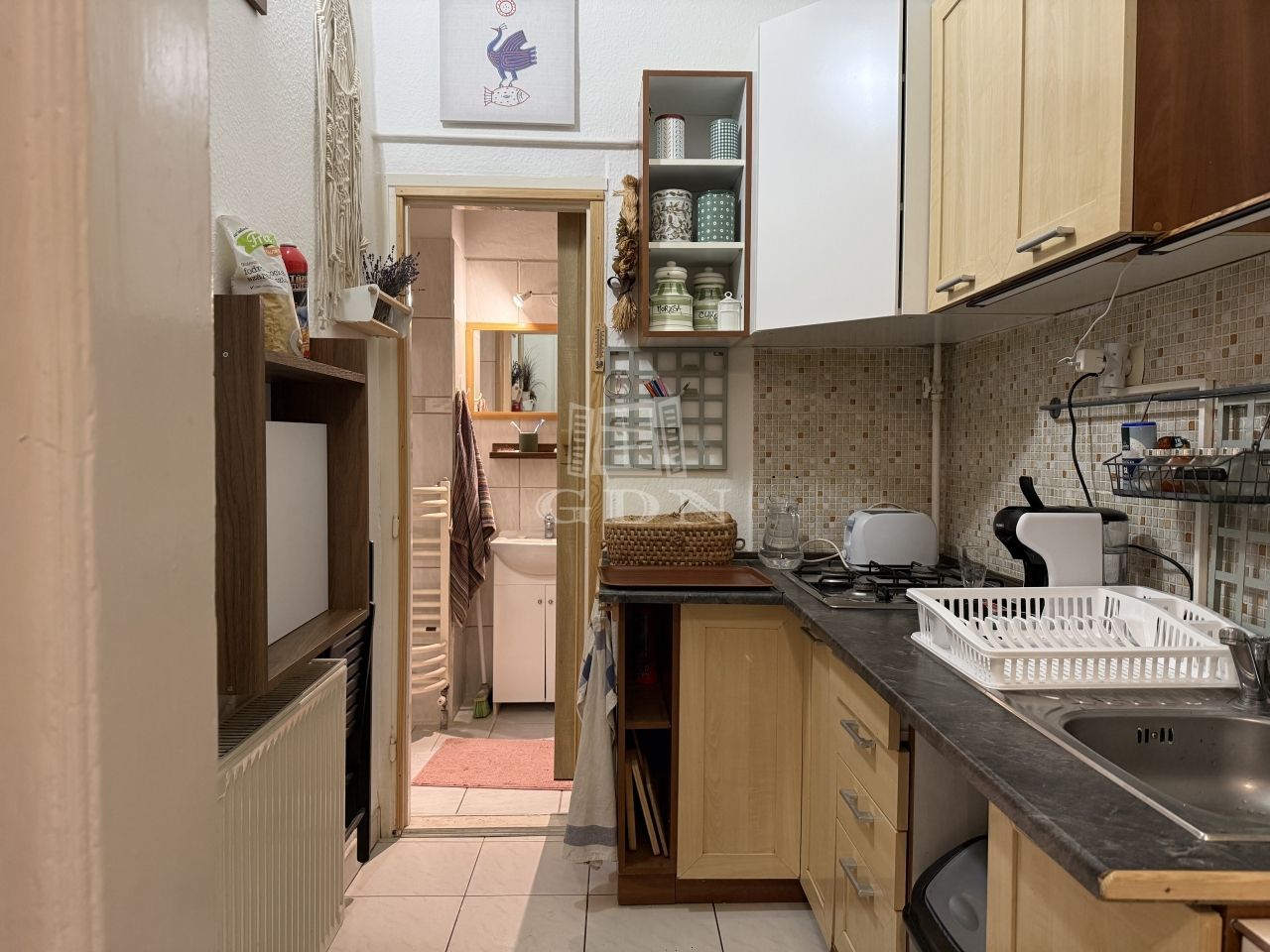 A lakás folyamatosan karbantartott, azonnal költözhető, teljes berendezéssel és gépesítéssel együtt eladó. A tulajdoni lap szerint 23 nm, a valós alapterület 33 nm. A hálószoba a korábbi lichthofból lett kialakítva, ablakos, jól használható külön szoba.