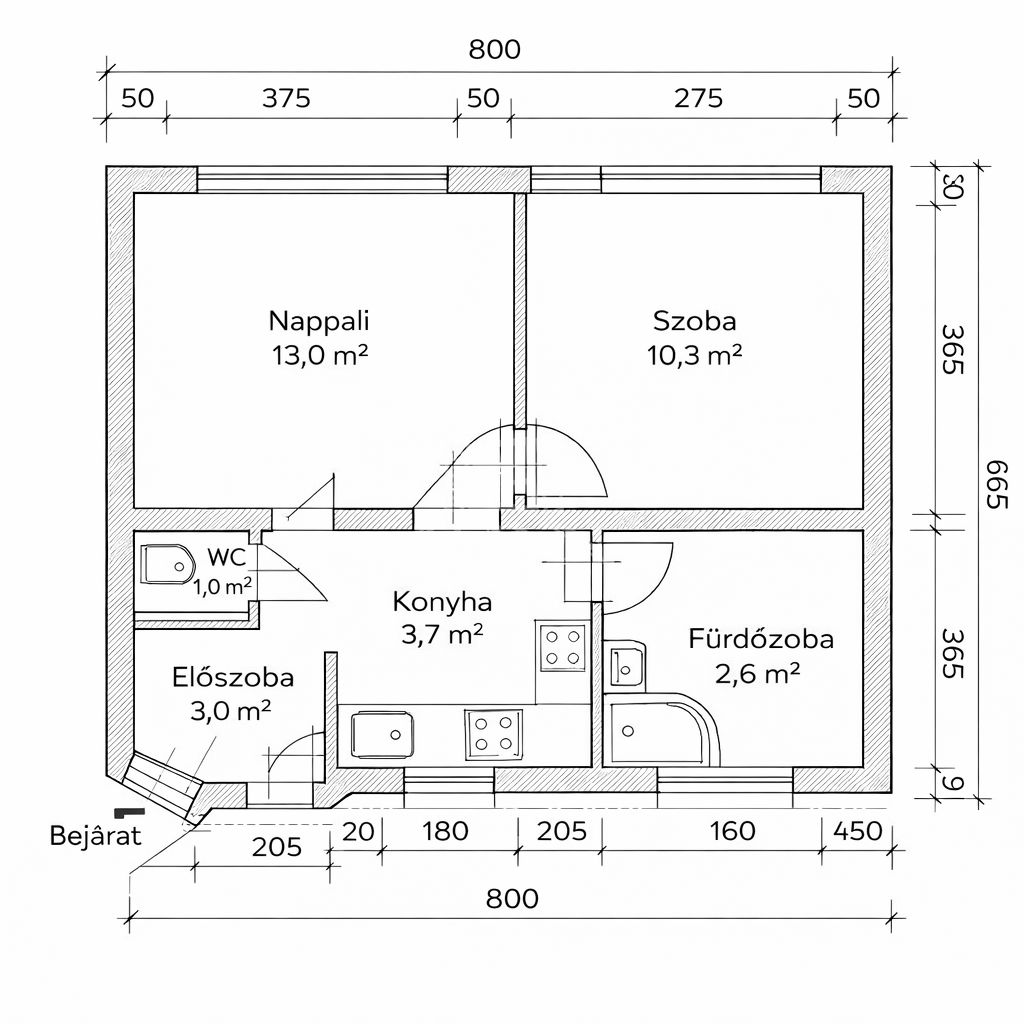 33 m2Alapterület 2 Szoba