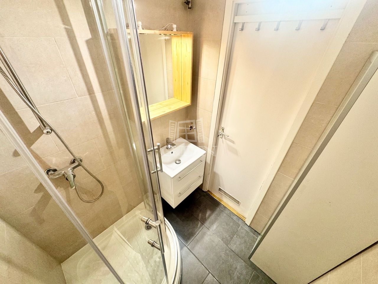 A lakás tulajdoni lap szerint 55 nm-es, 2 szobás. A tulajdonosok a társasháztól megvásároltak további 5 nm-t, mely előszobaként funkcionál.