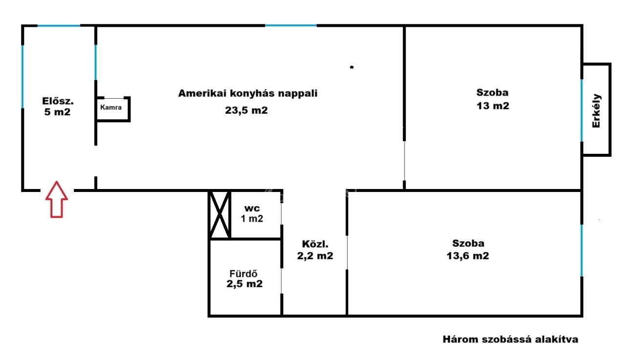 60 m2Alapterület 3 Szoba