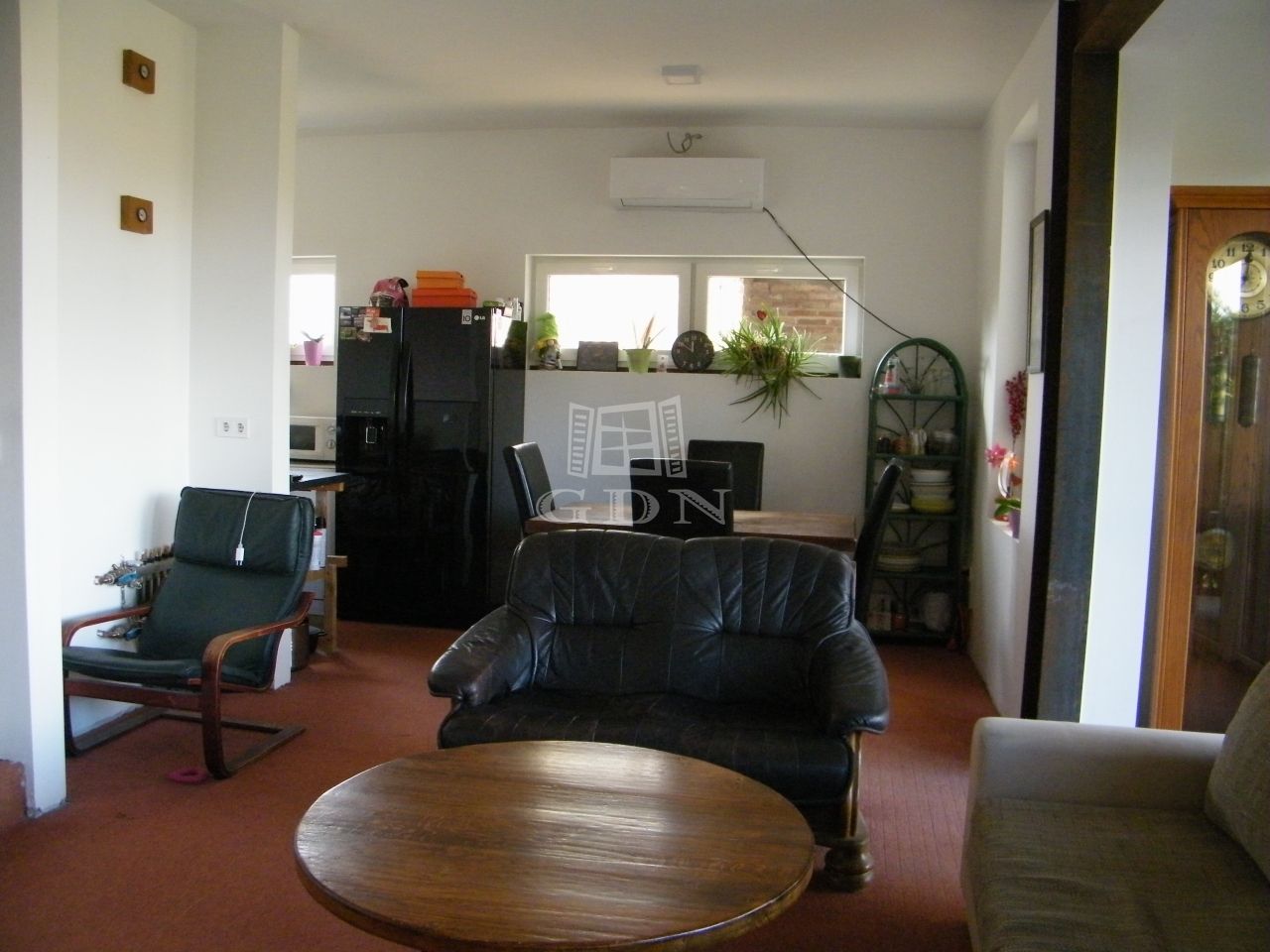 A kétszintes, 125 nm-es lakás és iroda épület helyiségei 4 szoba, két fürdőszaoba, közlekedő terasz. Fűtés: padlófűtés faelgázosító kazánról, 2 hűtő-fűtő klíma; kandalló kémény kiépítve.
