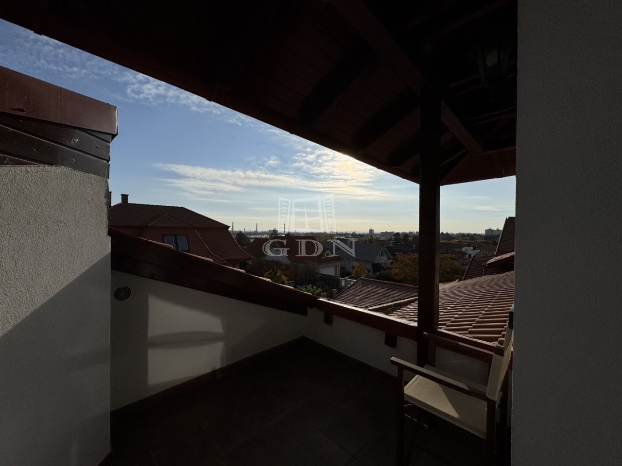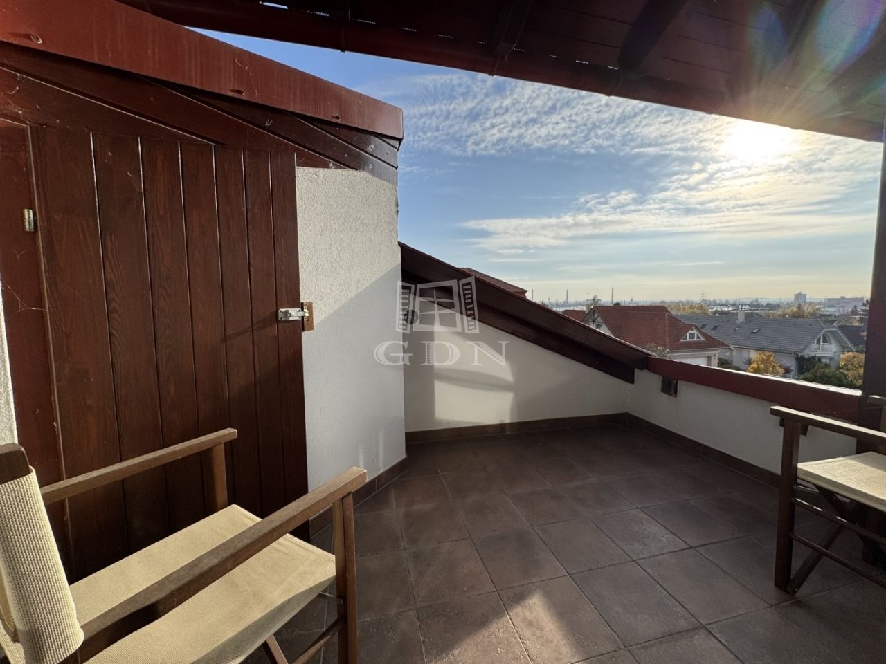 A tetőtérben 3 hálószoba, kettő gardrób és fürdőszoba, wc kapott helyet. A szinthez kapcsolódik egy fedett, 9 m²-es panorámás erkély, ahonnan lenyűgöző kilátás nyílik a városra.