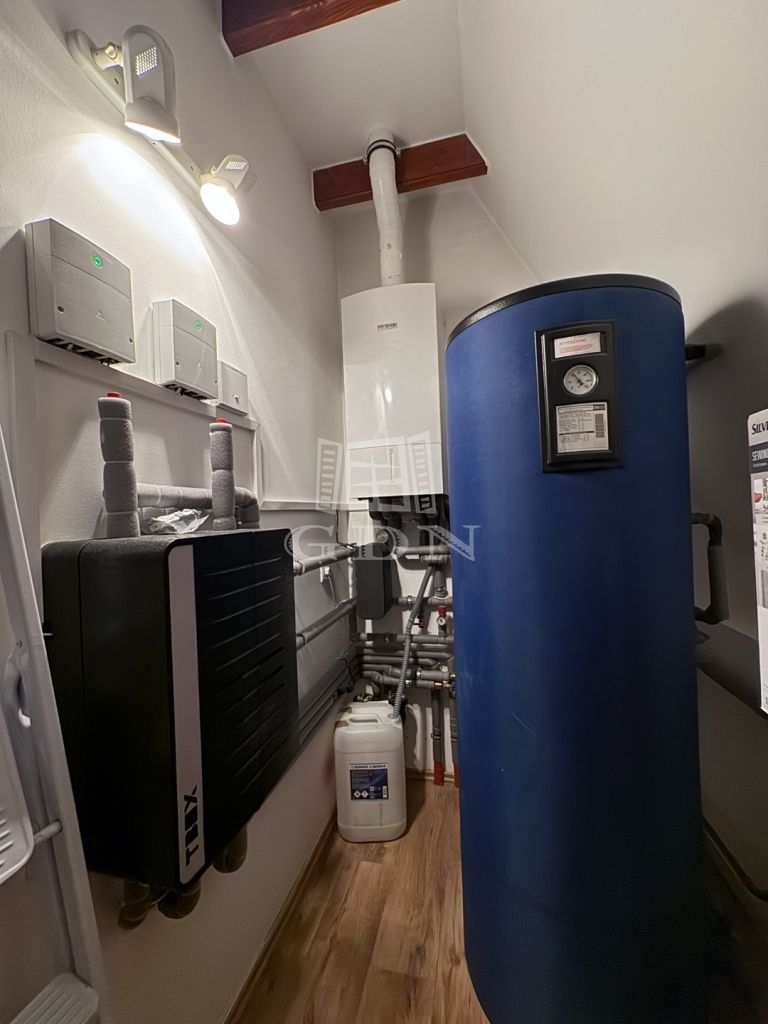 A fűtést korszerű cirkó gázkazán biztosítja, radiátoros és padlófűtéses hőleadással, míg a nappaliban található hangulatos cserépkályha, kiegészítő fűtési megoldást kínál a téli hónapokban. A házban hűtő-fűtő klímák, valamint központi porszívórendszer beépítésre került. A biztonságról riasztórendszer gondoskodik.