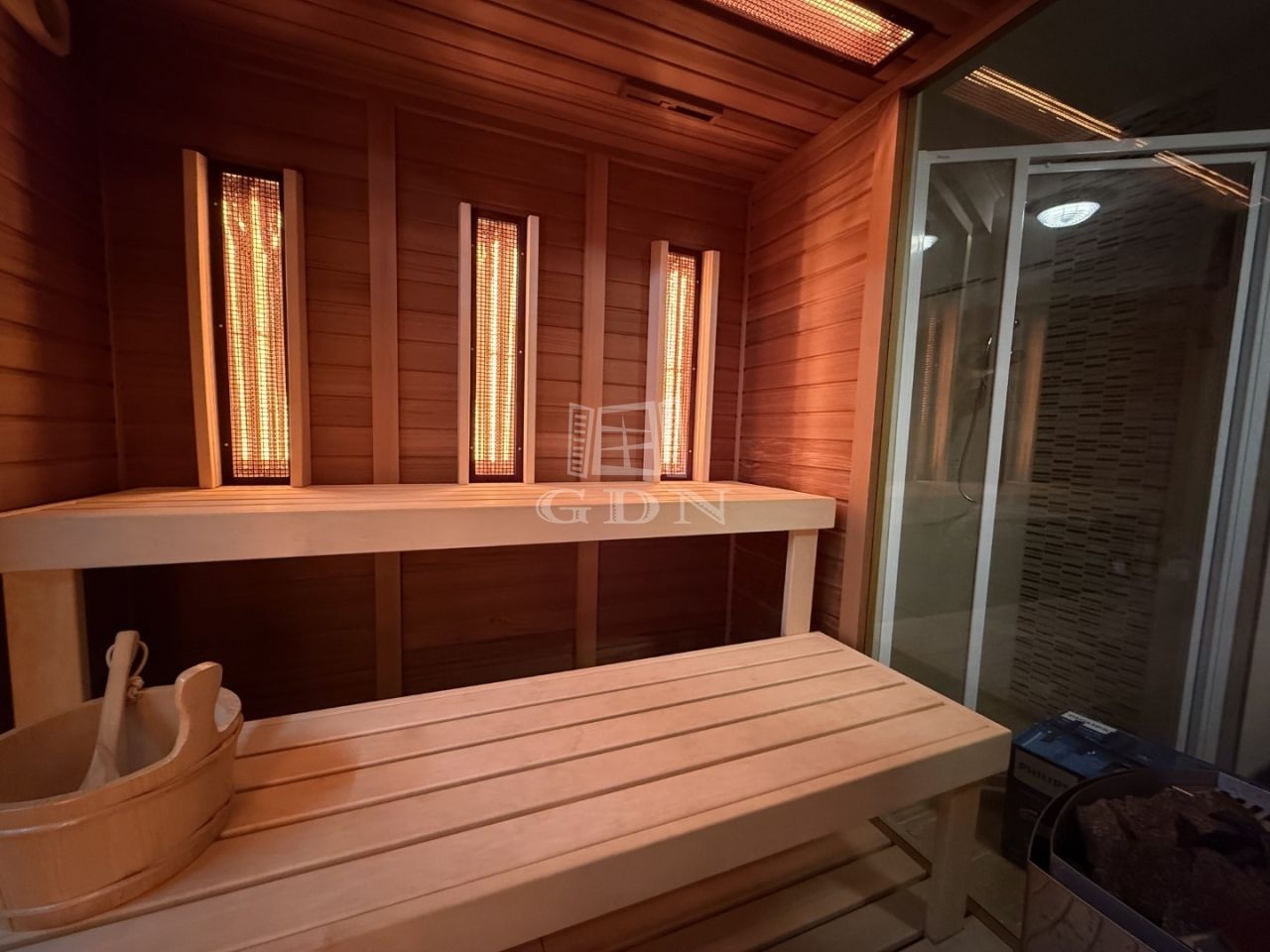 • kombinált finn és infra szauna , zuhanyzó a szaunához