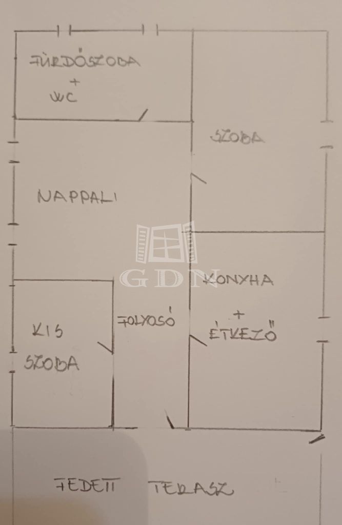 Helyiségek: konyha-étkező, nappali, 1 hálószoba, 1 kisebb szoba, fürdőszoba + WC