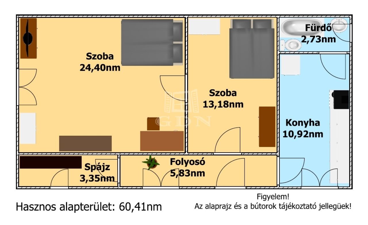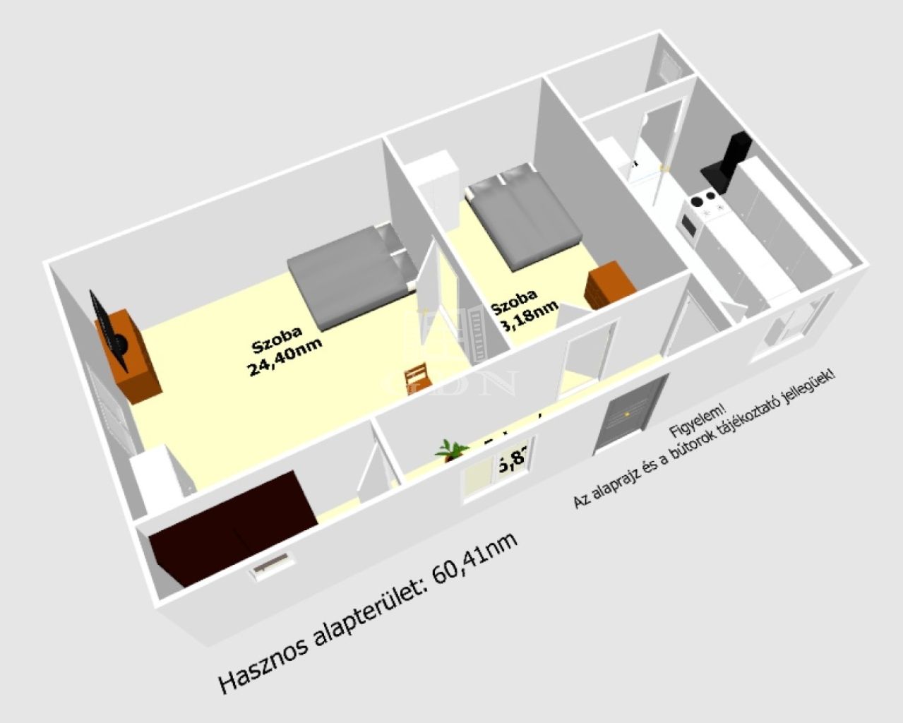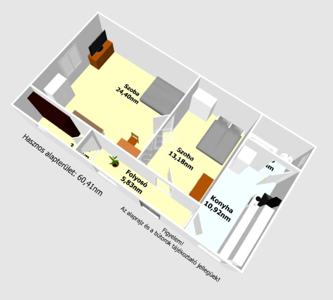 Az épület hasznos alapterülete 60,41nm melyben található: