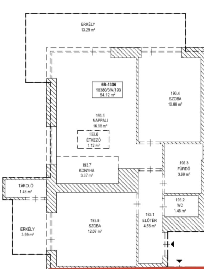 Elrendezés: amerikai konyhás nappali + 2 különnyíló hálószoba