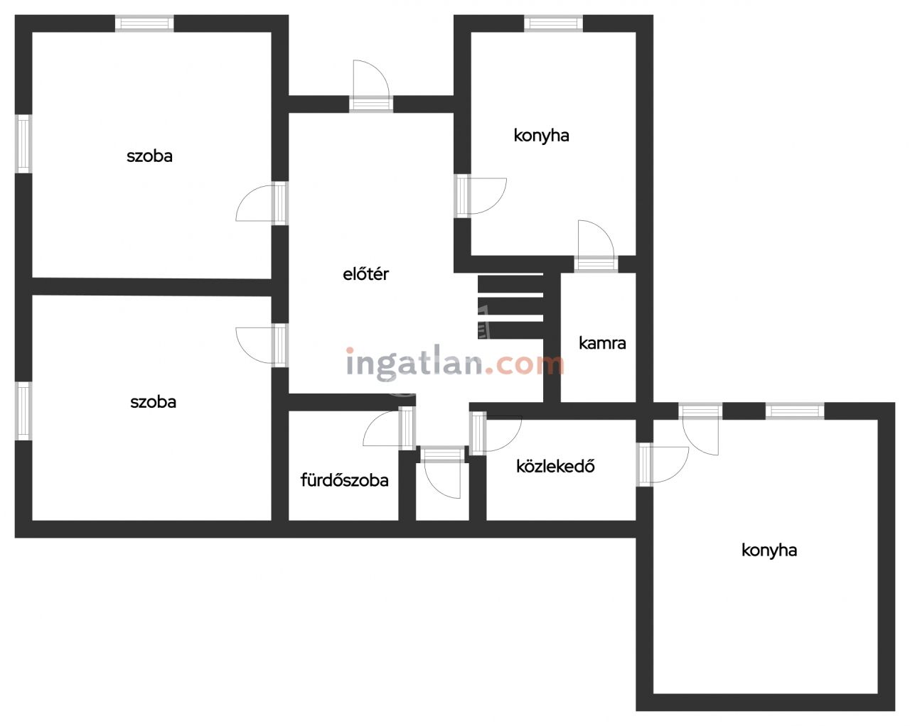 - Alsó szint: két szoba, két konyha, kamra, további helyiség