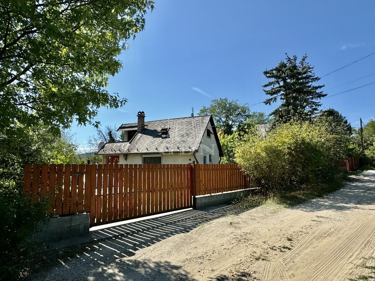 A kertet napfény simogatja, amit az utcától egy vasszerkezetre épült, fával burkolt úszókapu választ el. A kapu jelenleg manuális használható, de távvezérelhetővé alakítható. Az udvarban tudjuk leparkolni az autónkat, de a kapu előtt is kényelmesen meg lehet állni.