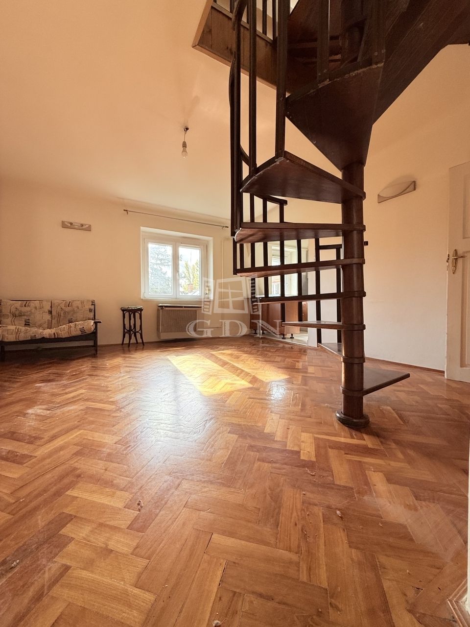 Titkos favorit a zavaros ingatlanpiac sokaságában, Zugló és Józsefváros határán a Puskás aréna mellett kiemelkedő infrastruktúrával. Ha szeretne központi elhelyezkedéssel egy kiváló, lakható, de akár könnyen bérbeadható társasházi lakást megfizethető áron akkor érdemes ezt az ingatlant személyesen is felfedeznie. Csupán 4 megállónyira (7perc metró) a Deák Ferenc tértől, Stadionok metró megállótól séta távolságban, madárcsicsergős, zöld és békés környezetben Stróbl Alajos utcában található az ingatlan. Elkerített zárt kertben áll az a 6 lakásos lépcsőház melyben a legfelső, második emeleten helyezkedik el ez a különleges, sallangoktól mentes duplex lakás. Az összes ablaka a csendes belső kert irányába néz és napkeltétől napnyugtáig világos, fényárban úszik. Az épület rendezett, a tetőt 10 éve újították fel új cserépfedést kapott, egyidejűleg velux ablakok kerültek beépítésre a felső szinten és az alsó szinten is műanyag ablakok váltották a fa nyílászárókat. Az alsó szinten az előszobából nyílik az összes helyiség, egy tágas háló, mellette egy praktikus kamra /dolgozó ablakkat és a fürő illetve a külön wc kapott helyet a konyha nappali mellett. A konyha – étkező és nappali jelenleg egy egység, de az ablakok elhelyezkedésének köszönhetően akár újra külön választhatóak. A nappaliból vezet fel egy csigalépcső, ahol további két hálószoba (ablakokkal)található, igény esetén a felső szint is alkalmas egy zuhanyzó és mosdó elhelyezésére. Az alső rész 47m2 a felső pedig bruttó 56m2 , a földhivatali nyilvántartás szerint 77m2, az értékesítési alapterületkén a 190cm alatti területet a szokásos 50%-kal került feltüntetésre. Fűtését tekintve jelenleg gázkonvektor, ami akár egy mika kazánra is cserélhető. Igény esetén a fűtés hőszivattyús klímákkal is megoldható opcionálisan H tarifával párosítva. A lakást immár 6 évig bérlő lakta, azonnal birtokba vehető az ingatlan. A környéken minden megtalálható, ami városi mindennapok kényelméhez elengedhetetlenek. Könnyen parkolhatóak a környező utcák, kiváló tömegközlekedési lehetőségek állnak rendelkezésre. Az aréna pláza csupán 900m távolságra. Tökéletes lehet akár nagyobb családok részére, de bérbeadás is korrekt hozamot hoz a stabil ingatlan ár növekedés mellett így magas inflációs környezetben értékálló befektetés.