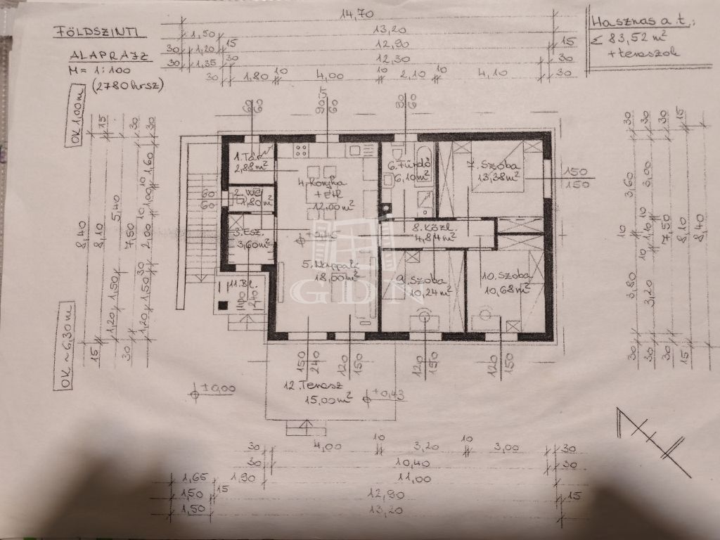 Szoba:13,38m2, 10,68m2, 10,24m2