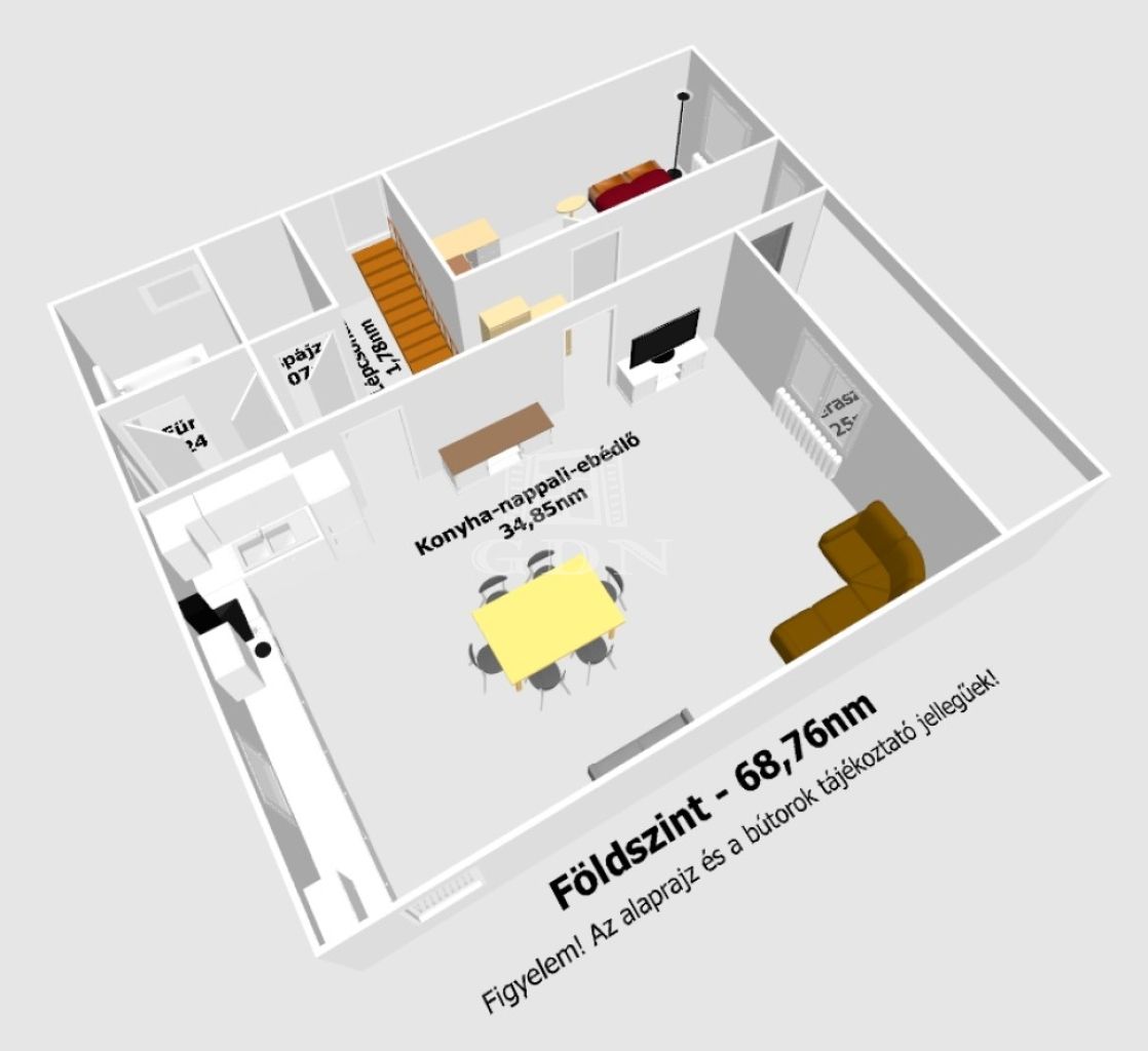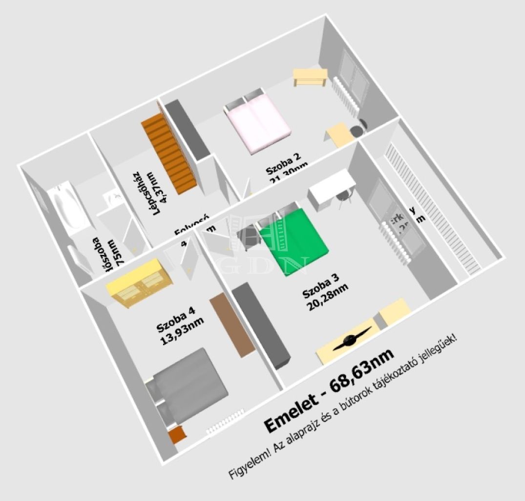 Az épület hasznos alapterülete 68,76+68,63=137,39nm melyben található: