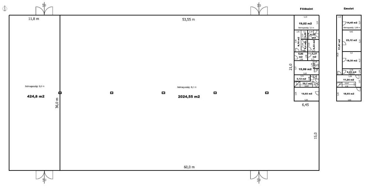 ‣ 4db szintbeli ipari kapu: 4,5m x 4m