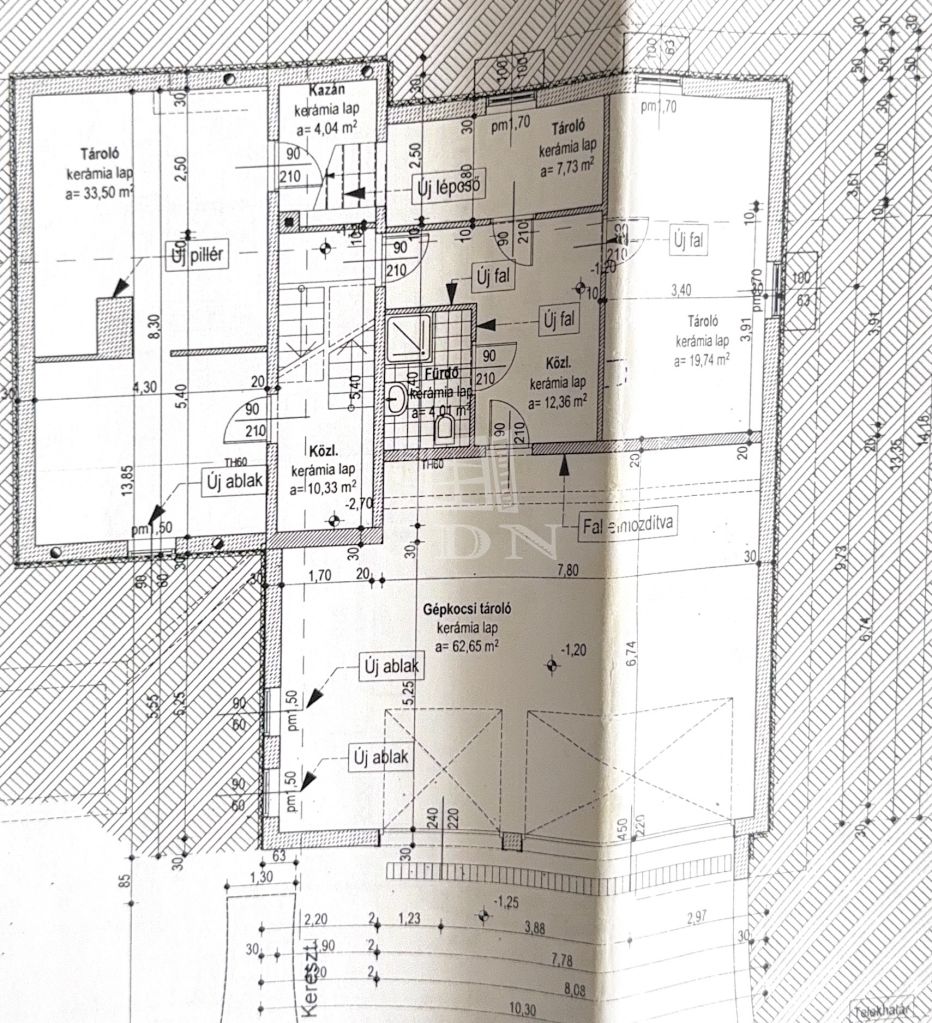 Közel 60 m²-es gépkocsi-tároló, több tárolóhelyiség és teljes gépészet található – nem alagsor, hanem teljes értékű, praktikus szint.