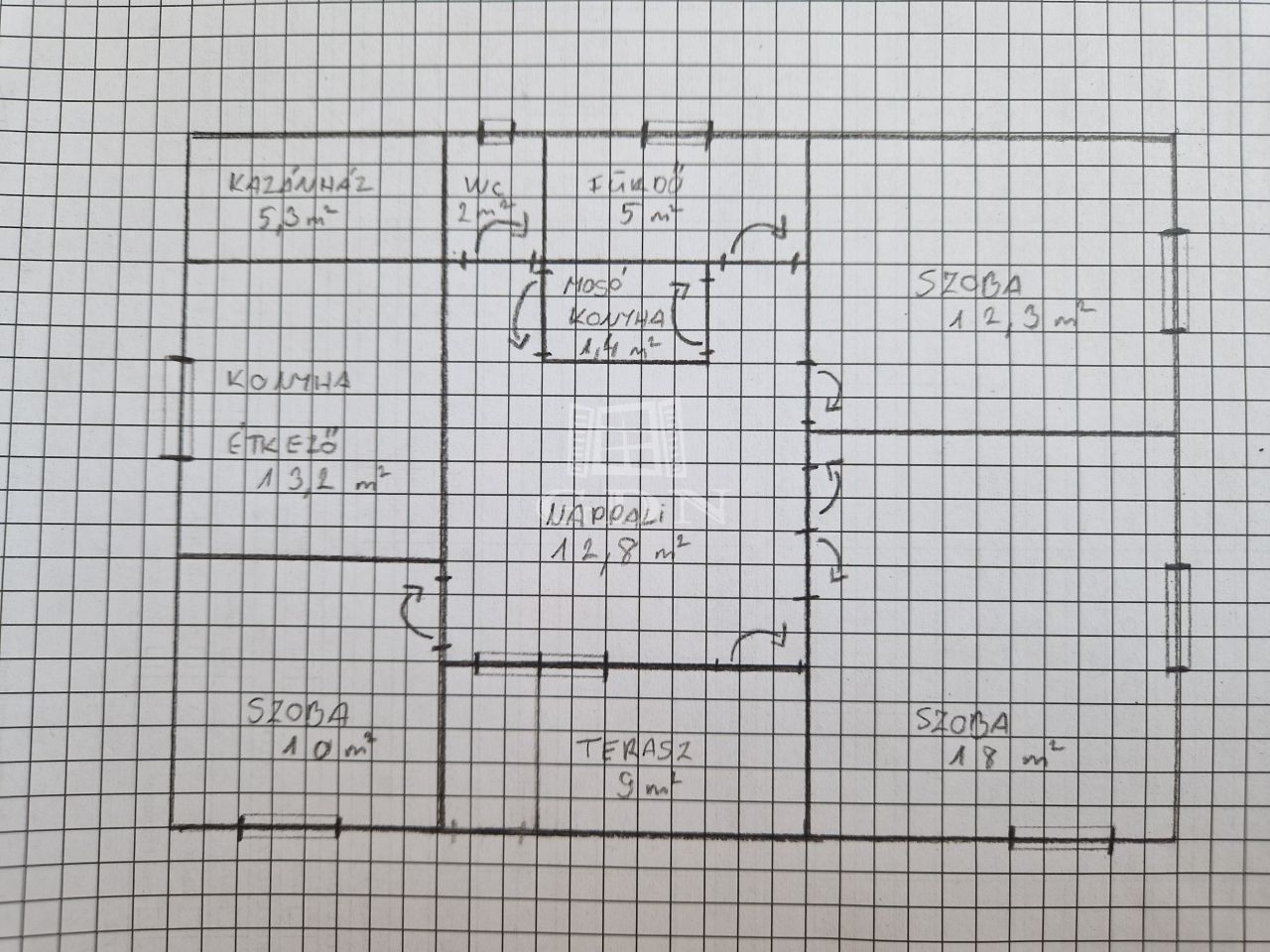 - 82 m2-en ad helyet egy előtérnek, 3 szobának, egy konyhának, egy mosókonyhának, egy fürdőkáddal felszerelt fürdőnek, egy külön helyiségben található toalettnek, valamint egy kazánháznak.