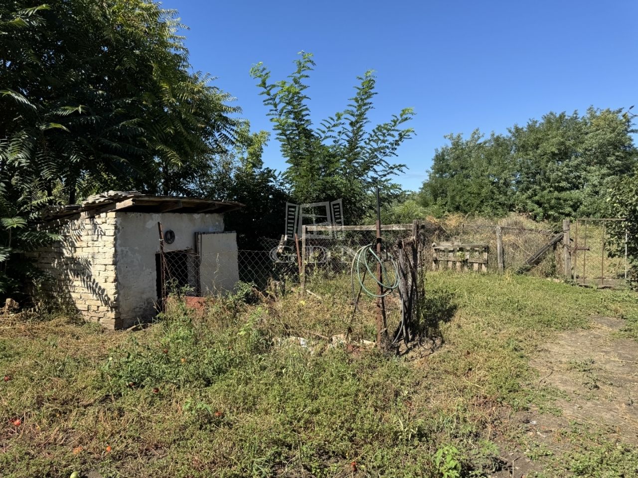 A telek 1490m2, körbekerített. Az udvar rész füvesített, található rajta egy ásott kút is.