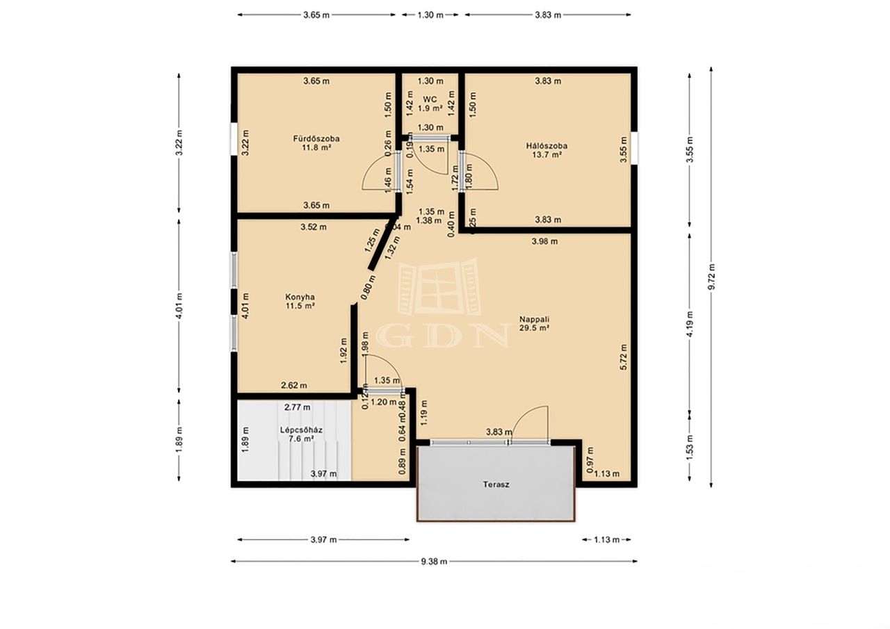 Tetőtéri lakás (61 m² + 7,8 m² erkély)