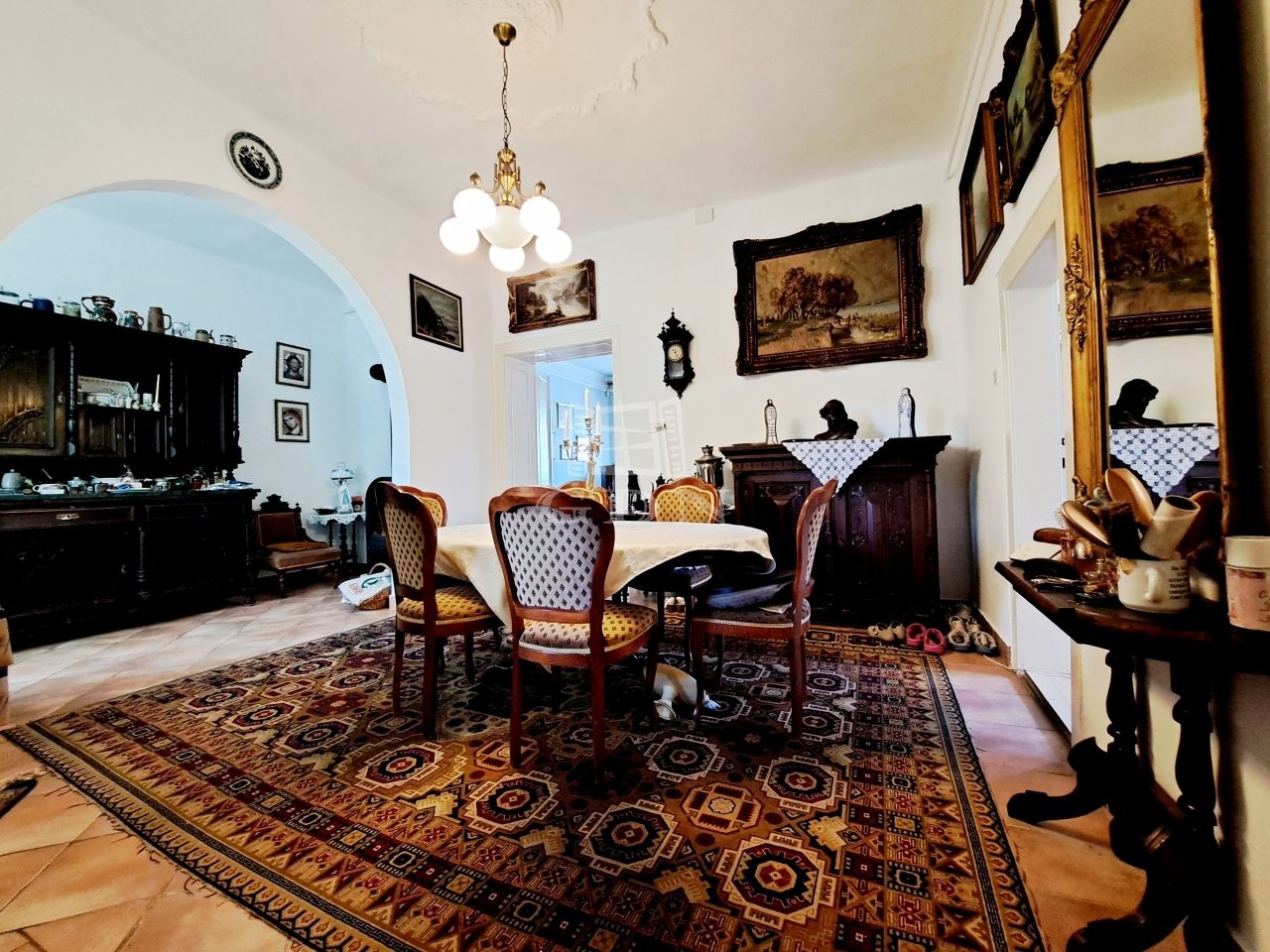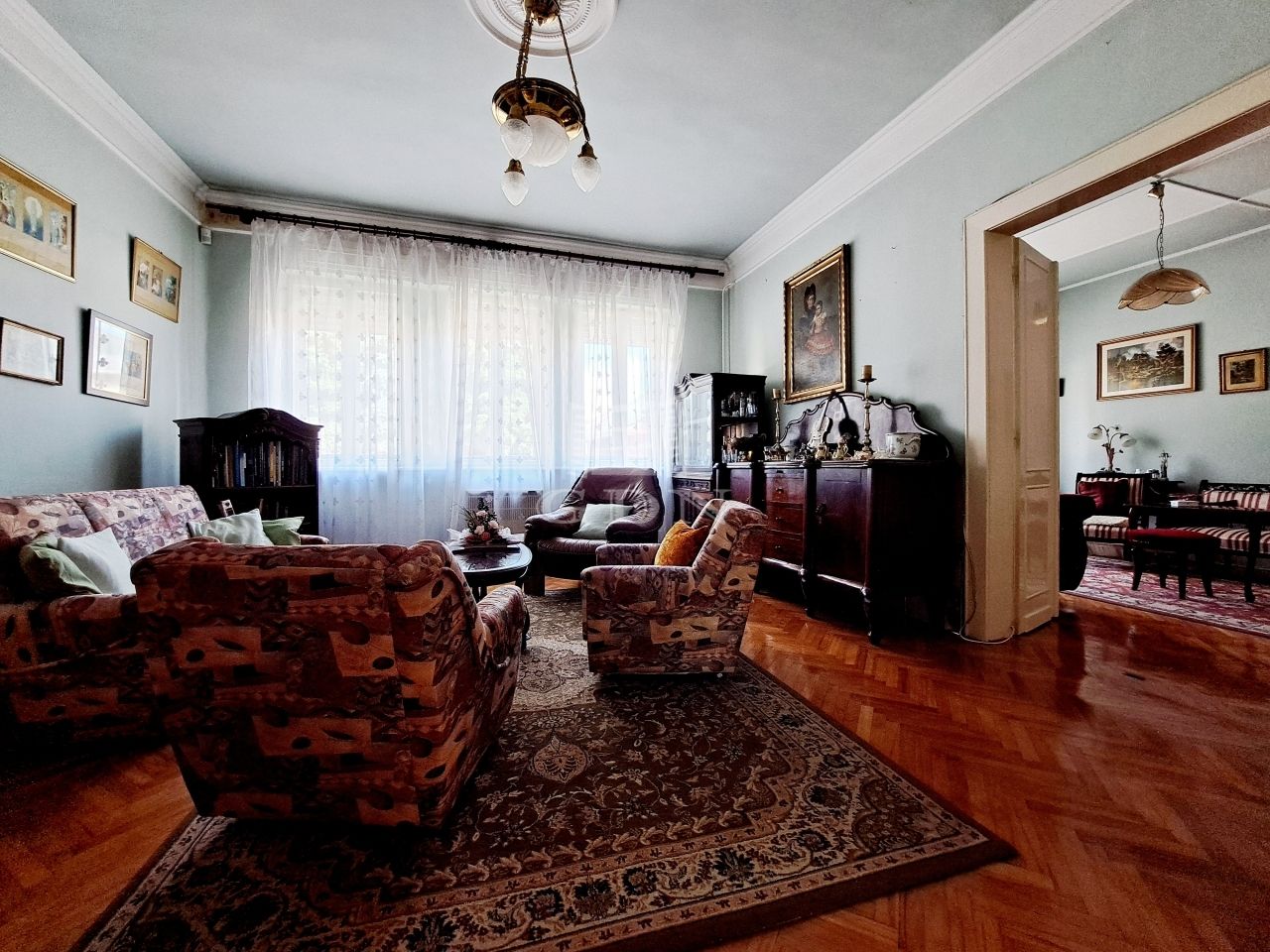Az első lakrészben találjuk, a 4 szobát, előszobát, konyhát, ebédlőt, fürdőszobát, gardróbot, spájzt.