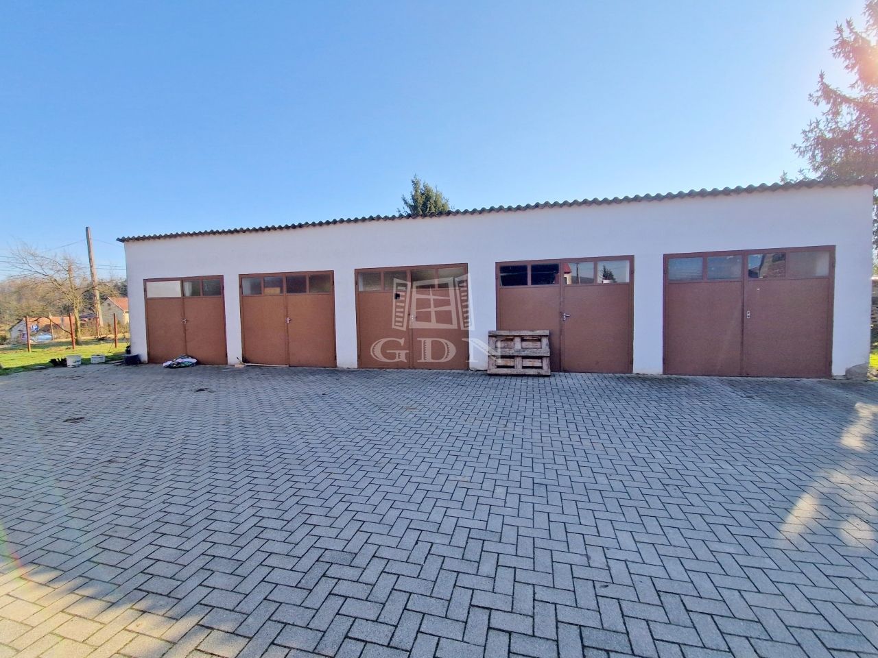 - és további, 2 beállós lemez garázs is elhelyezésre került.
