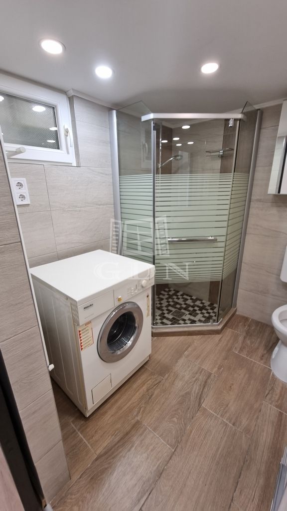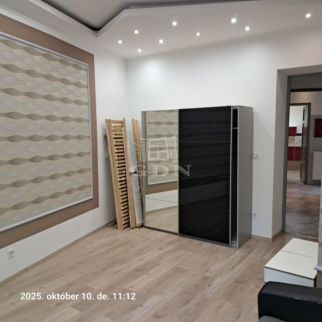 A 58 m²-es lakás tágas, világos, két fürdőszobás, akár két külön bérlő számára is ideális.