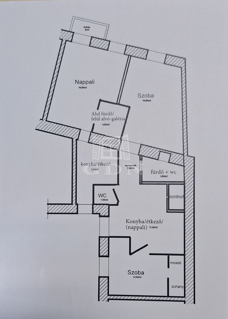 A 33 m²-es garzon galériázott, erkélyes, gépesített konyhával – tökéletes kis városi kuckó.