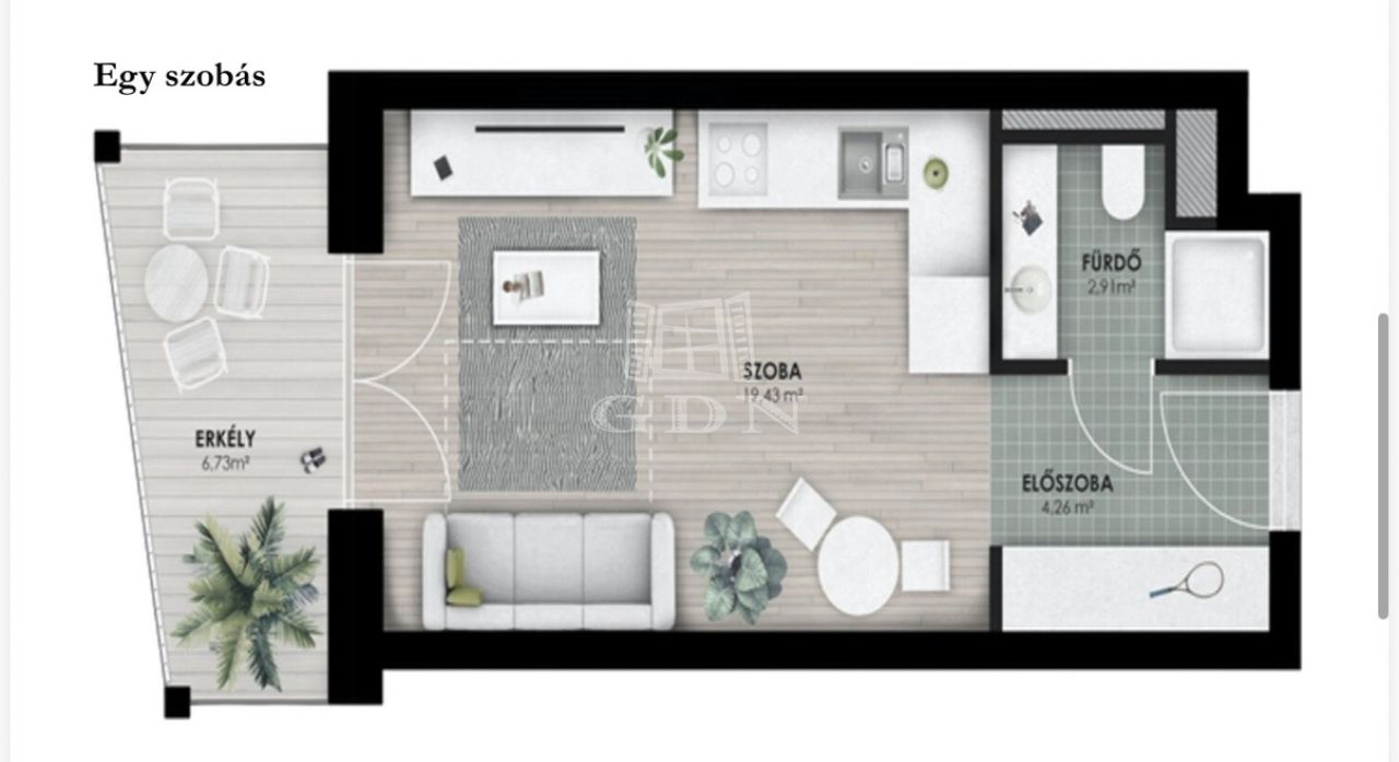 | 27 m2Alapterület | 1 Szoba |