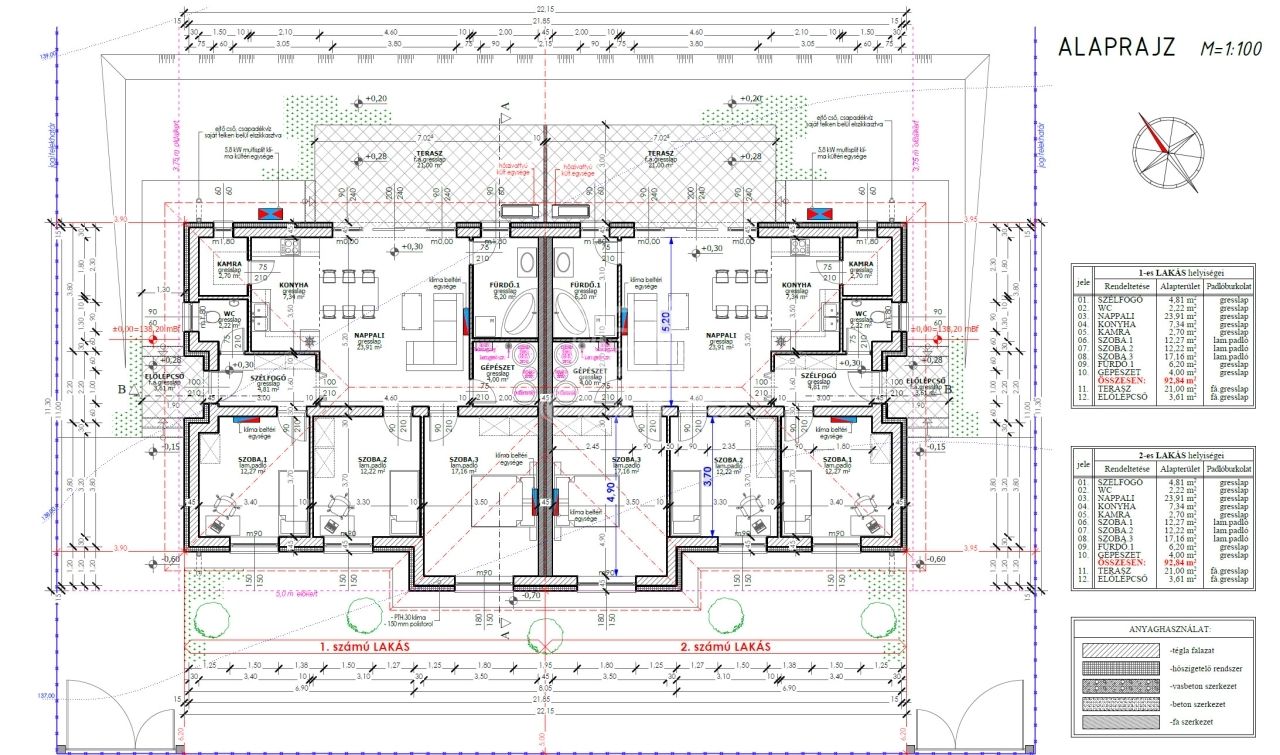 Az ingatlanok dupla közös fallal köztük szigeteléssel érinkeznek és azonos 731 m²-es kizárólagos használatú telekrészekkel fognak rendelkezni.