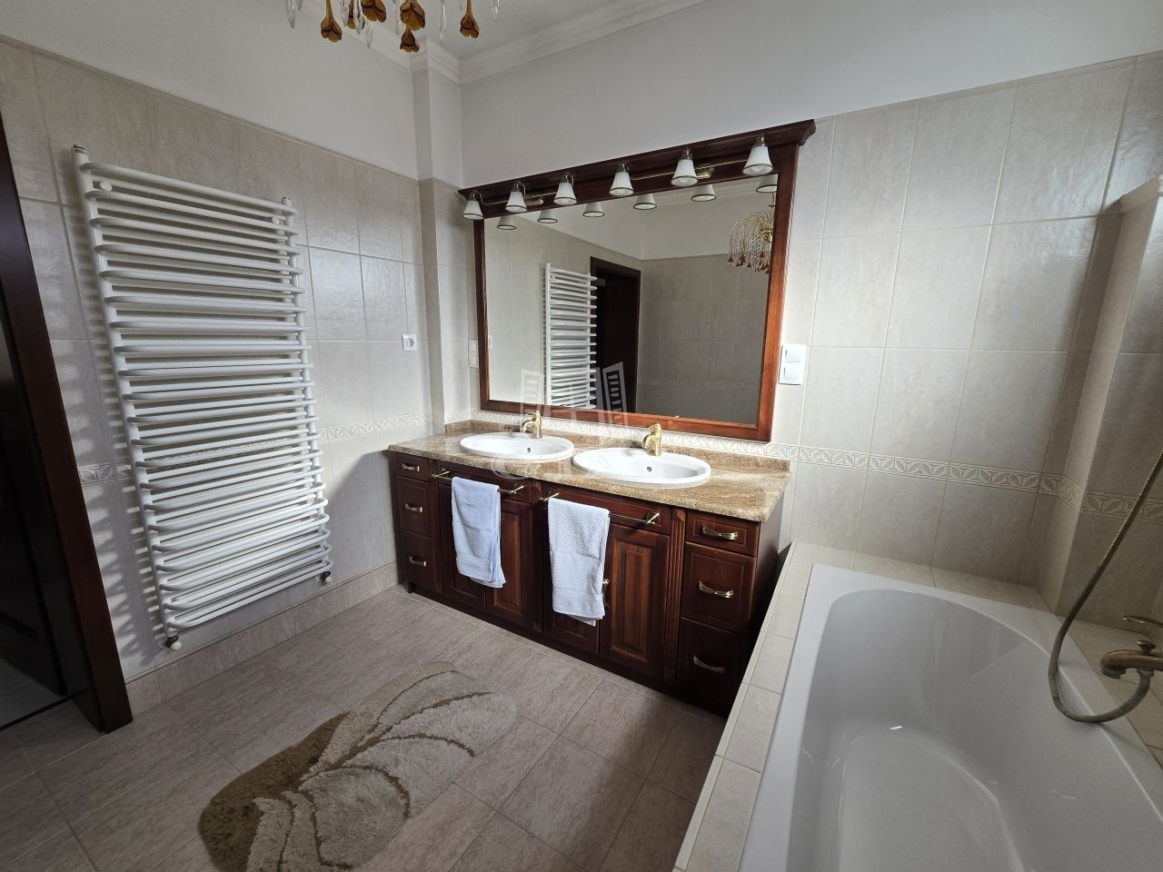 A földszinti lakótér három tágas szobából, egy világos, nagy méretű konyhából, kamrából, több mint 15 m²-es étkezőből, fürdőszobából, külön WC-ből, valamint előszobából áll. A helyiségek elosztása átgondolt és praktikus, a ház kiváló fényviszonyokkal rendelkezik, minden helyiség tágas és világos.