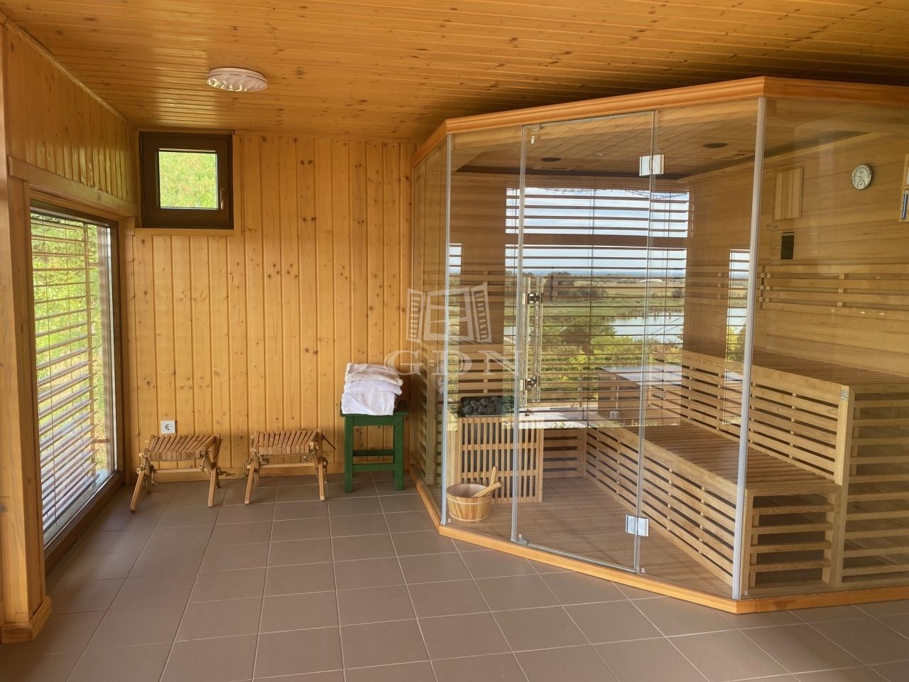 A telken elhelyeztek egy 3000 l nagyságú dézsafürdőt, melyből a csodálatos panorámában gyönyörködhetünk.