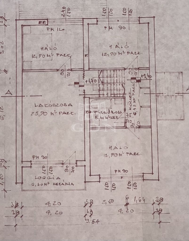 Lakás: 48nm (konyha-étkező, 2 szoba, fürdő-wc)