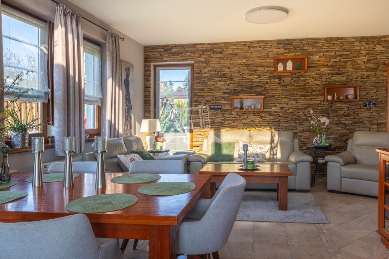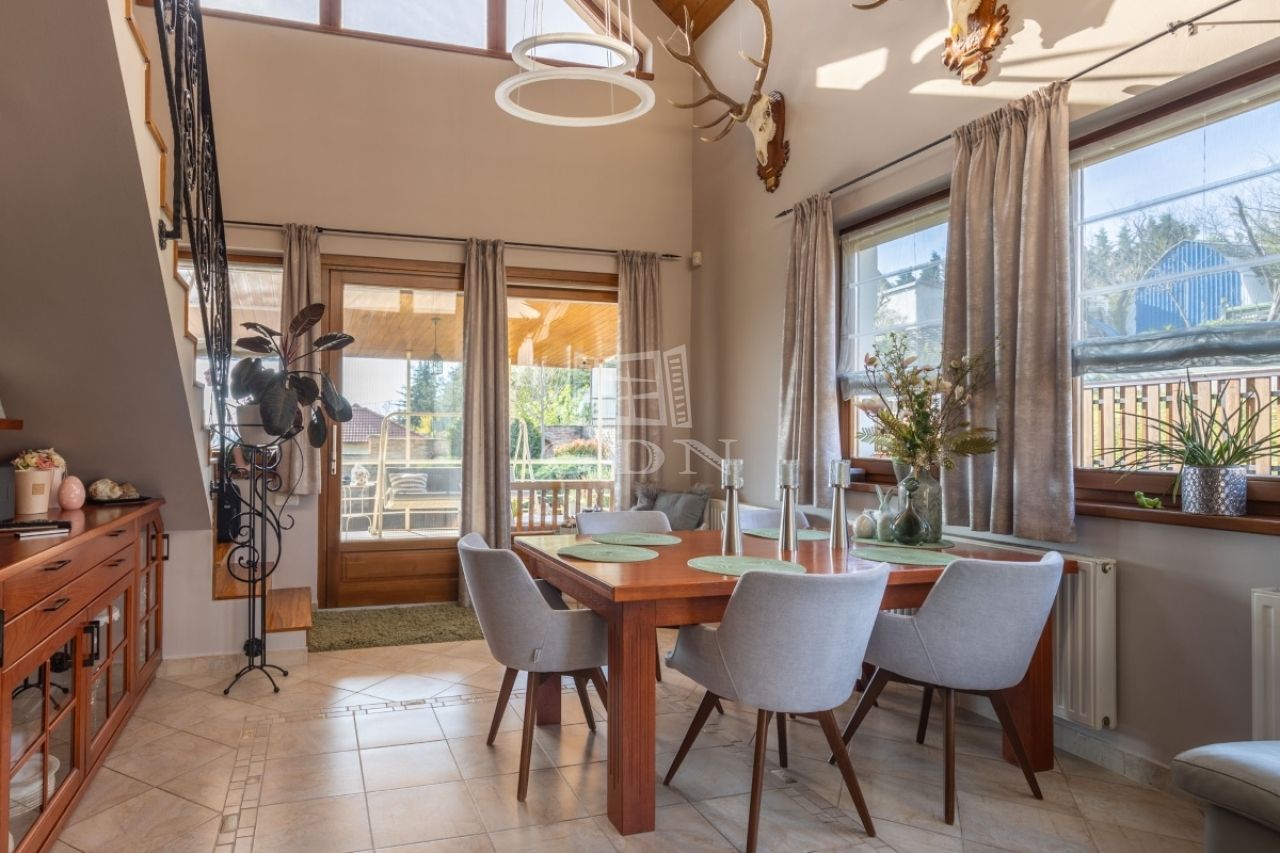 Az étkezőből közvetlen kijárat nyílik a teraszra, és a legtöbb helyiség teraszkapcsolattal rendelkezik.